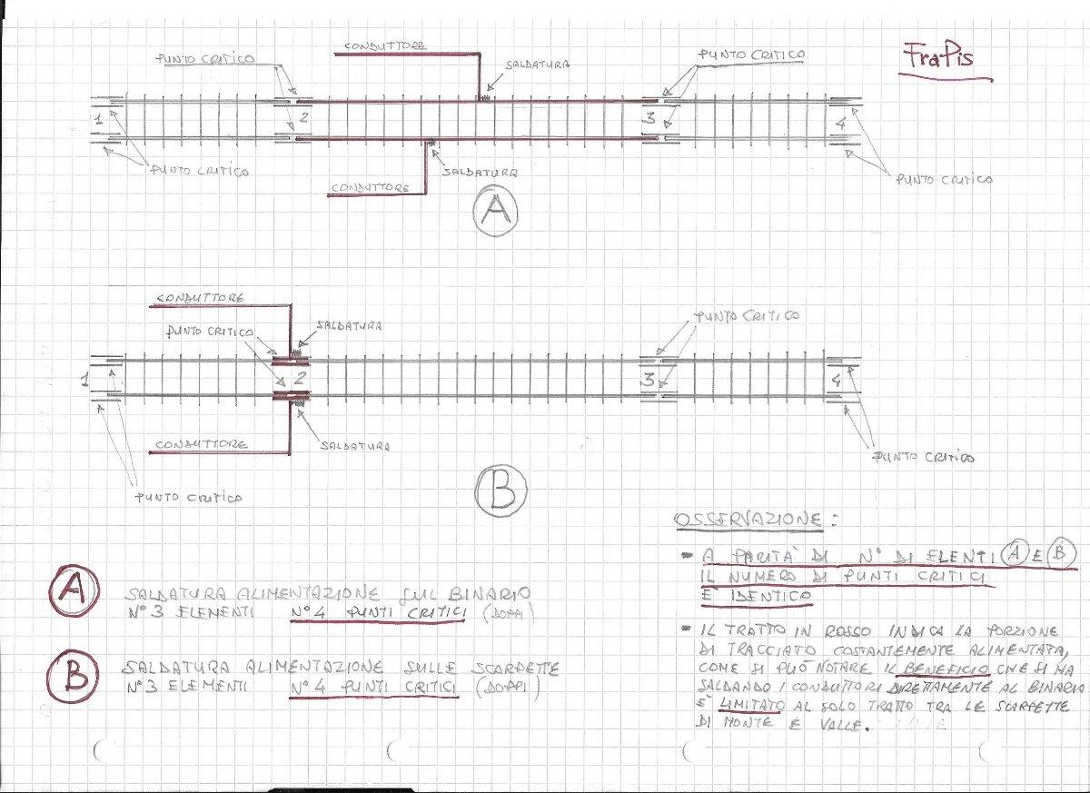 Per quanto riguarda la mia "Analisi di criticità" è solo un calcolo probabilistico che serve a dimostrare che il rischio aumenta con l'aumentare delle connessioni a prescindere dal sistema di collegamento utilizzato saldatura su scarpetta saldatura su binario, l'unico modo per diminuire il rischio è quello di prevedere un numero maggiore di alimentazioni distribuite lungo il tracciato [102]