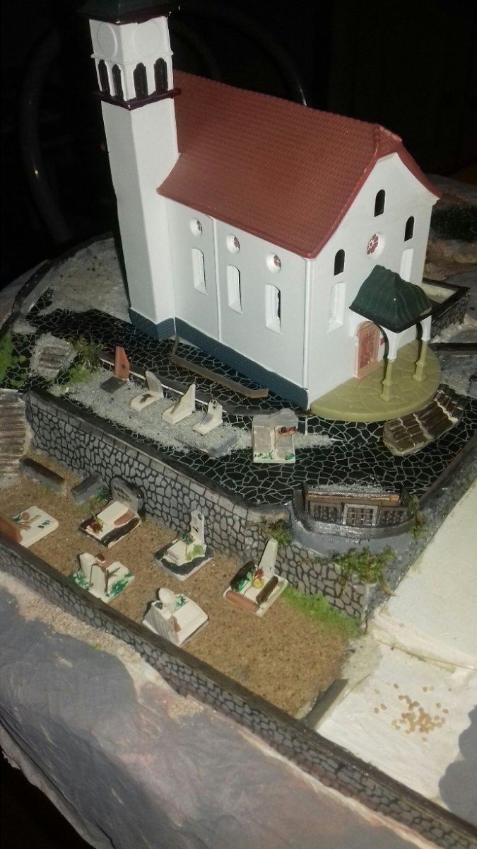 Te l'ho detto in privato e te lo ripeto sul forum, a me piace l'idea alternativa dell'utilizzo del foglio DeA, mi piace particolarmente il contrasto con il muro di contenimento, con una "sporcatura" della chiesa renderai il tutto meno giocattoloso e più reale.