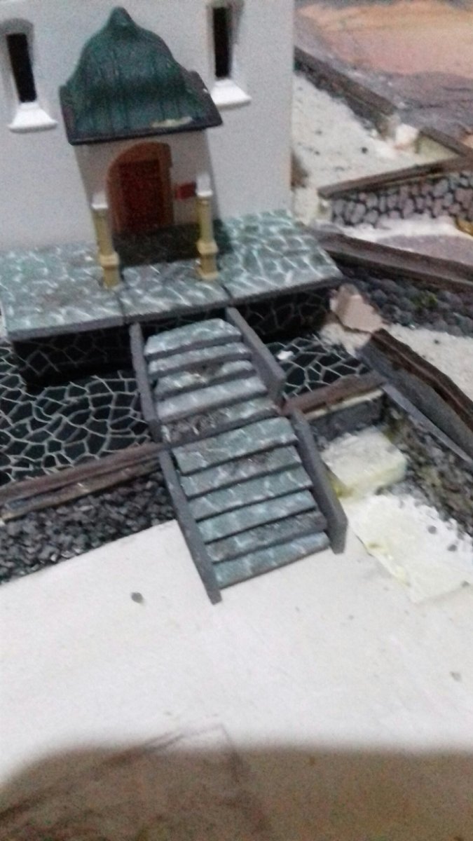 Come premesso ho fatto delle modifiche sul sagrato della chiesa...modificando la mezzaluna e la scalinata che porta alla chiesa...per il momento i pezzi sono solo poggiati...vanno ancora corretti e ritoccati