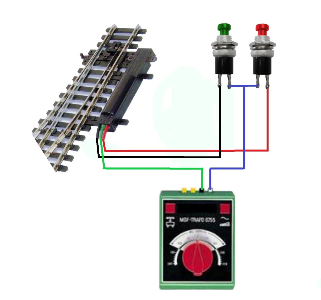 Per sicurezza si devono utilizzare pulsanti o interruttori che non rimangono continuamente con il contatto chiuso in modo da non danneggiare la bobina , ma devono solo dare l'impulso per fare scattare il deviatoio in posizione.