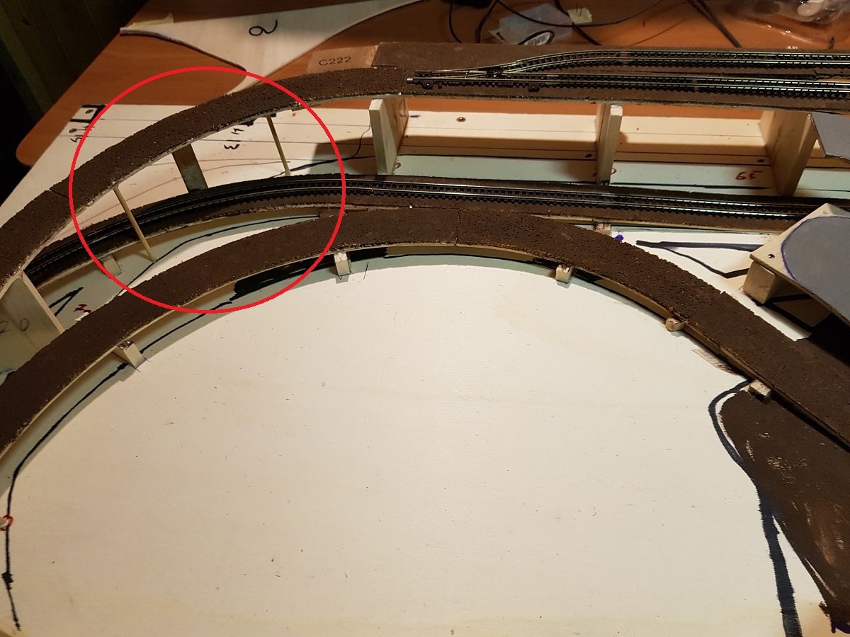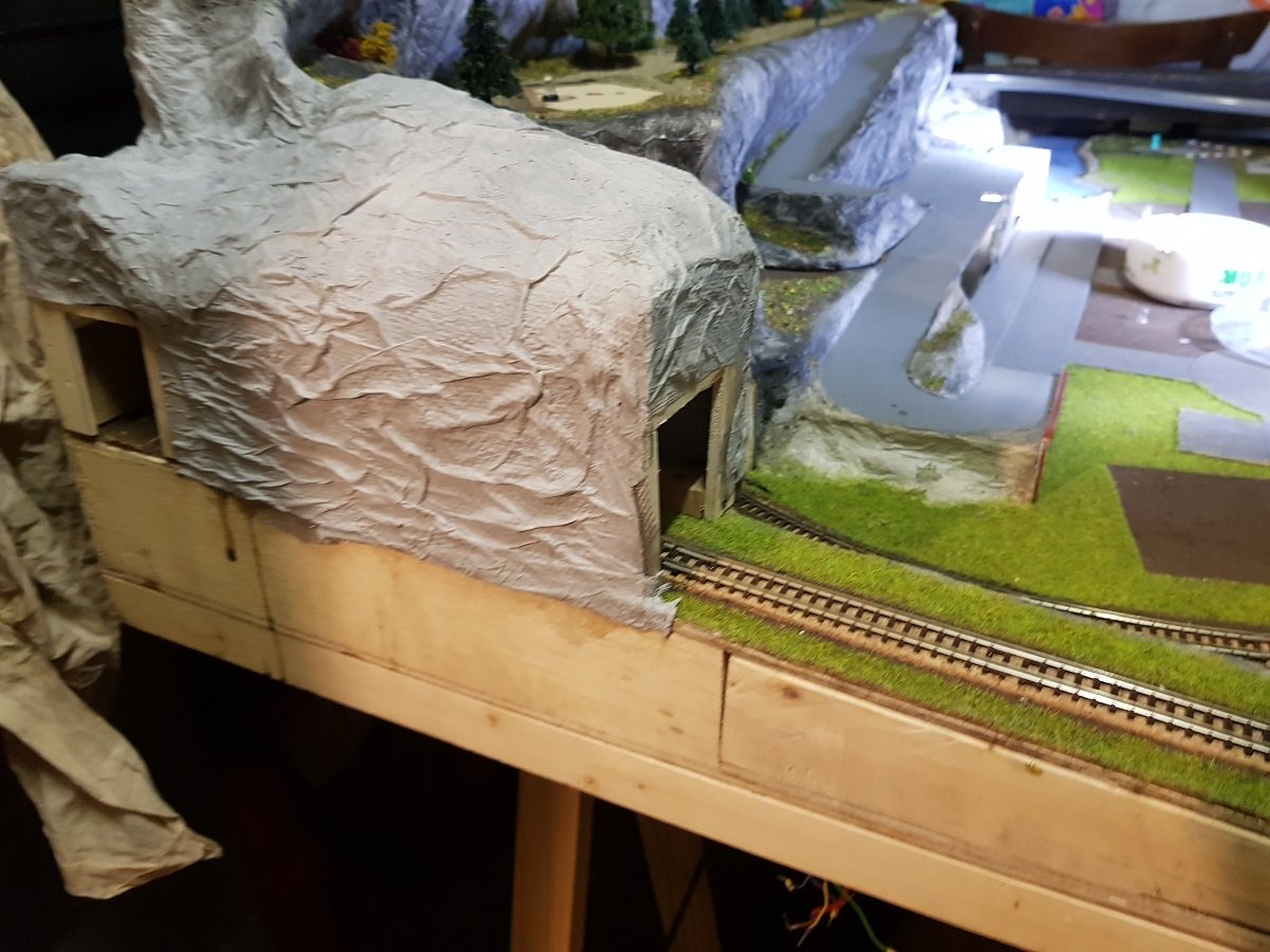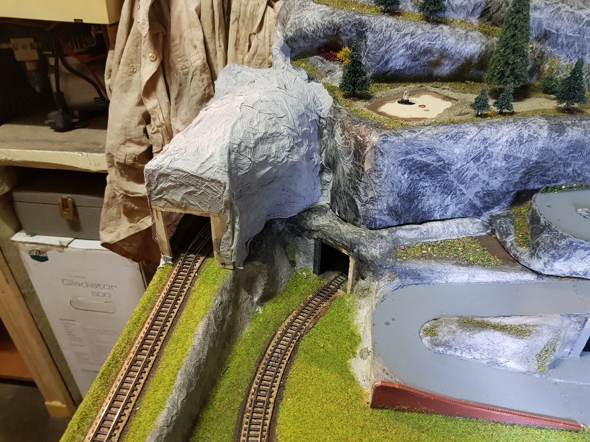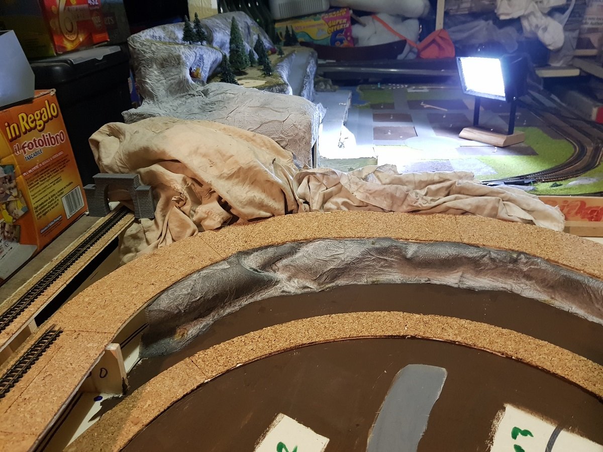 Nell'ultima foto, ho messo degli stracci per simulare la montagna e rendere l'idea di come si presentera' la zona (piu o meno) affiancando i 2 circuiti.