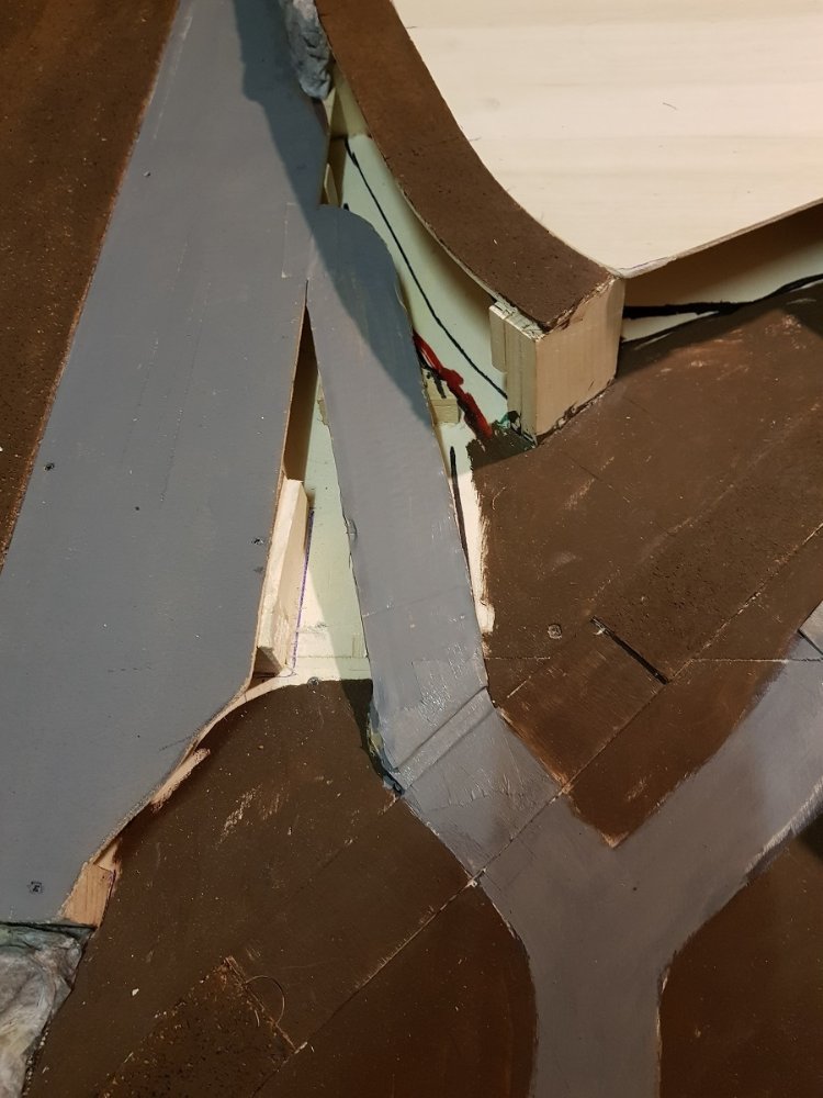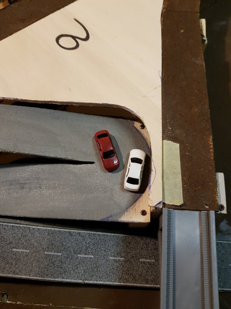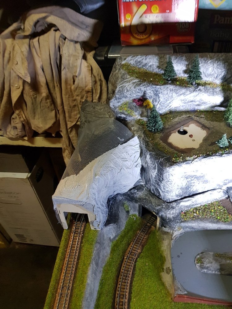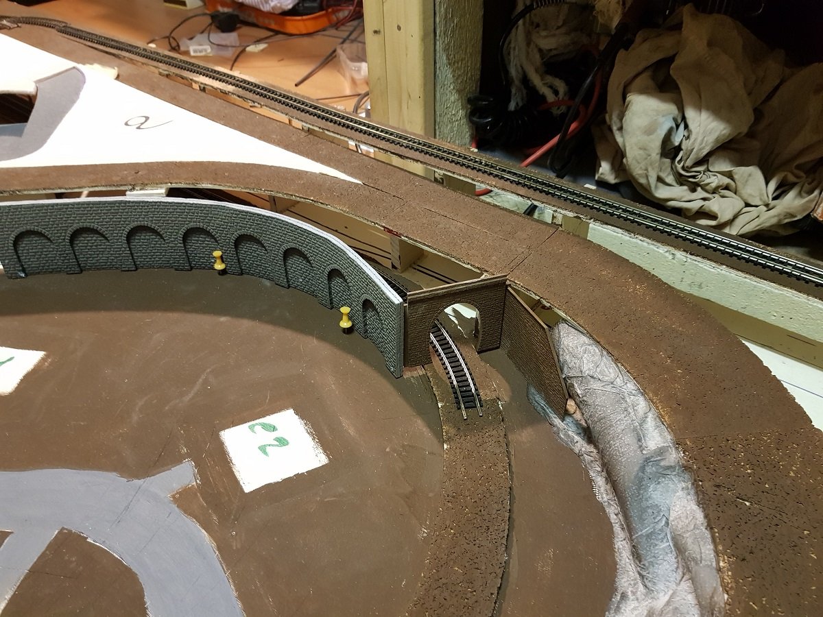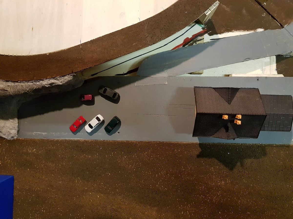 Nell'ultima foto, ho messo degli stracci per simulare la montagna e rendere l'idea di come si presentera' la zona (piu o meno) affiancando i 2 circuiti.