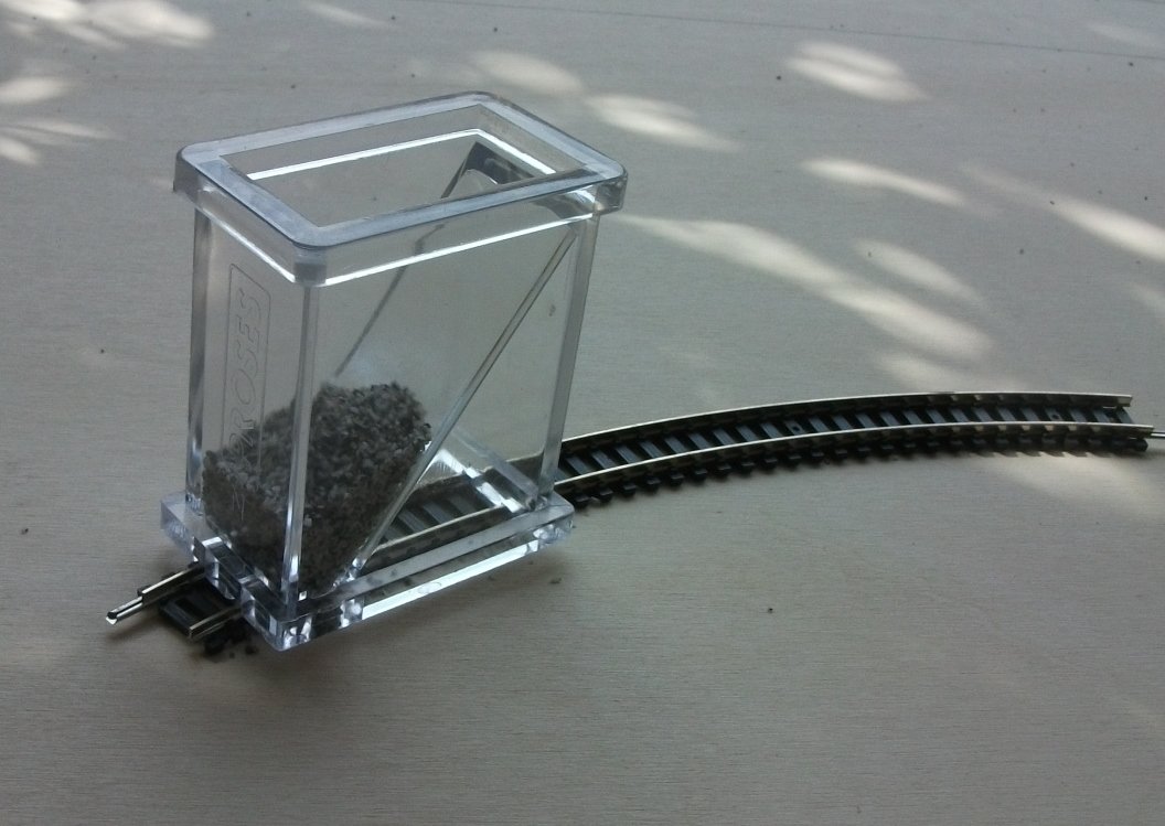 5)....verifica che il divisore tra le due guide posteriori,passando sulle traversine, sposta il ballast tra gli spazi delle stesse (se fa ciò ti evita di adeguare, il ballast posato in più, col pennello)....