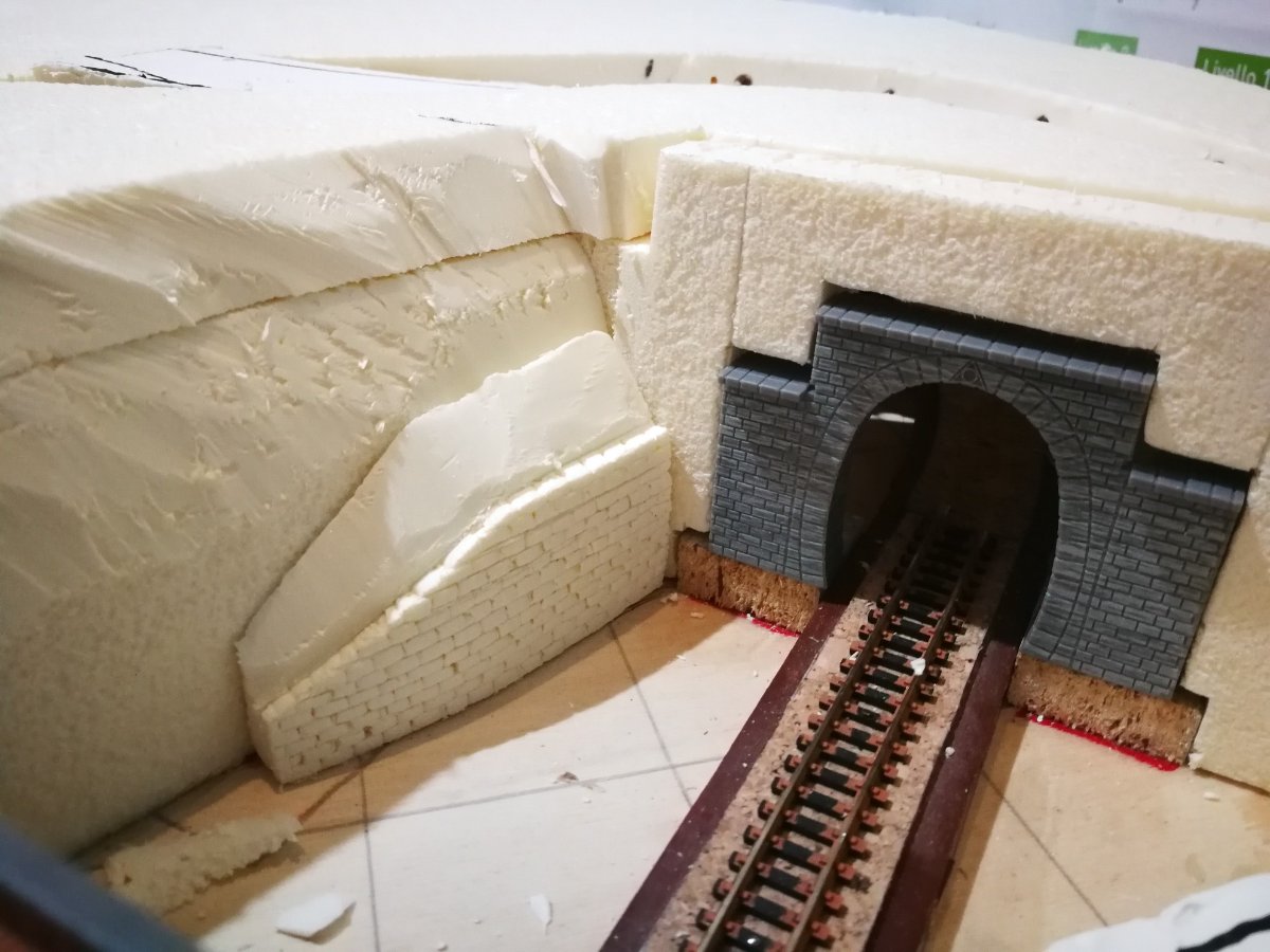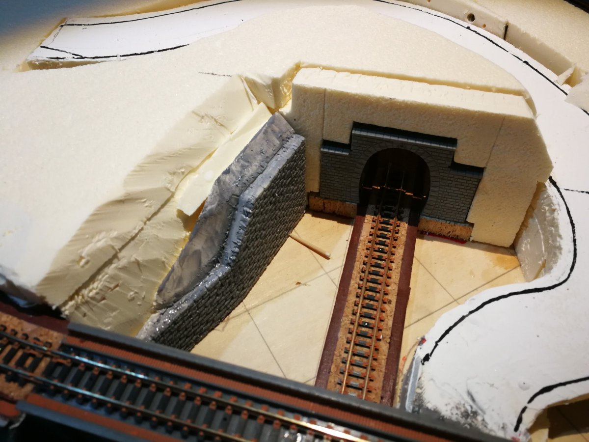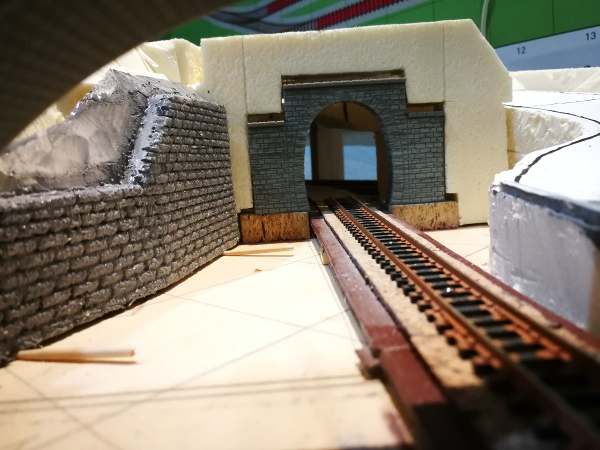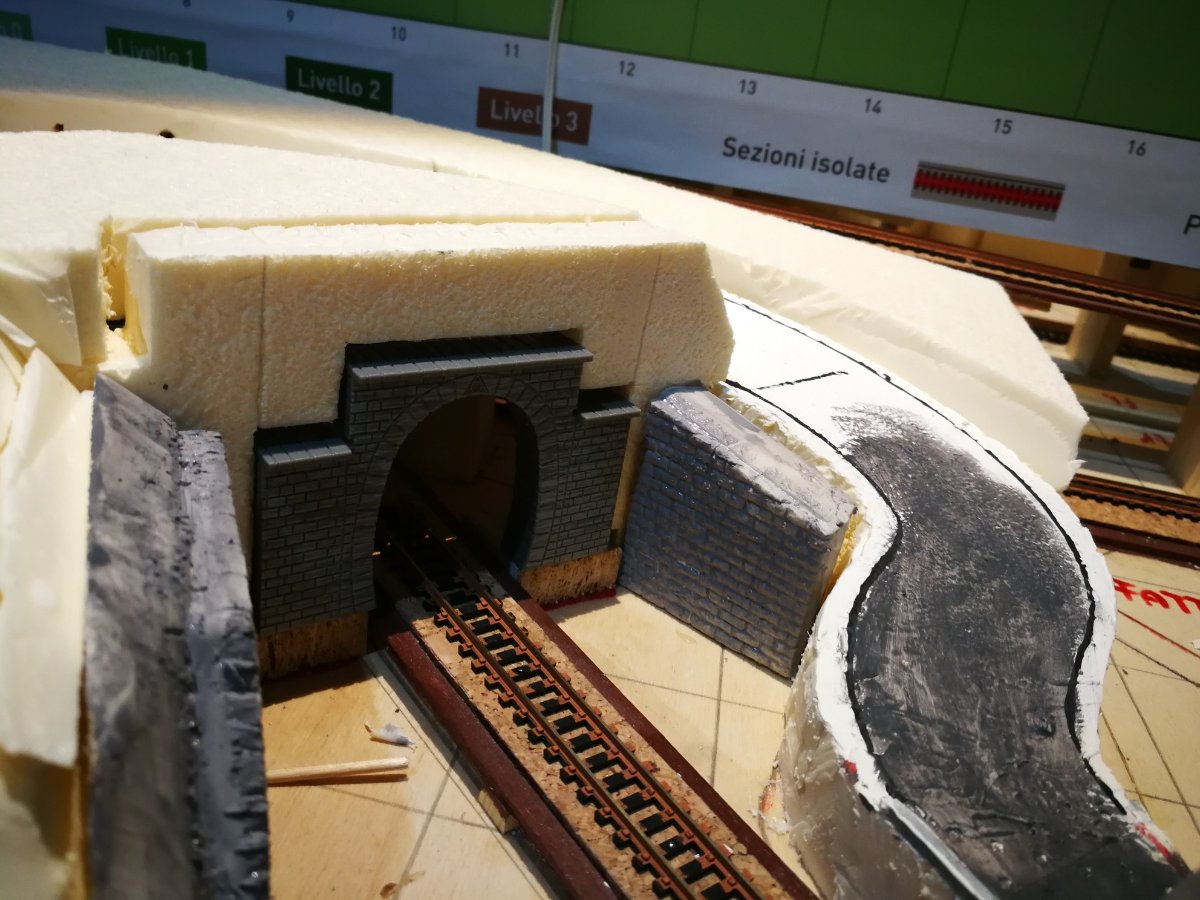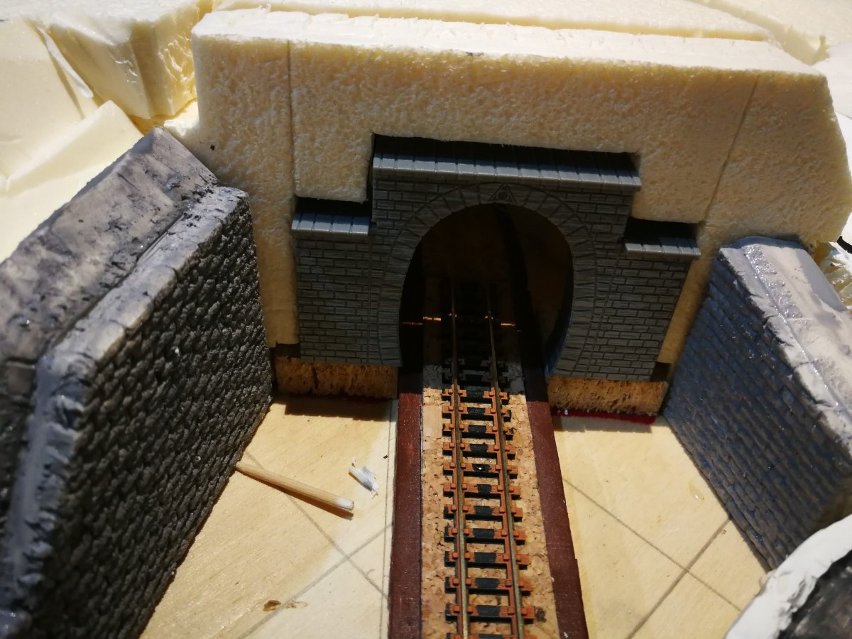 Se posso darti un consiglio rastremerei anche la parte sopra il portale un 45° di inclinazione non stonerebbe, raramente il portale è a picco contro la parete della montagna, tendenzialmente parte prima proprio per proteggere la linea o la strada da un eventuale caduta massi.
