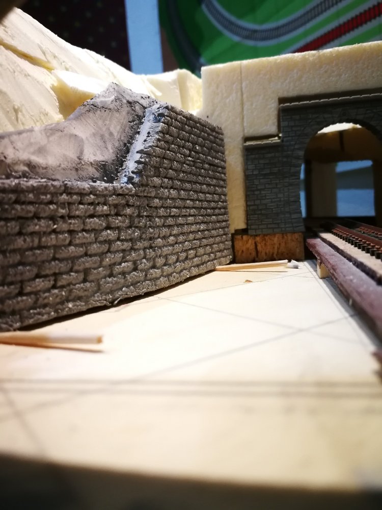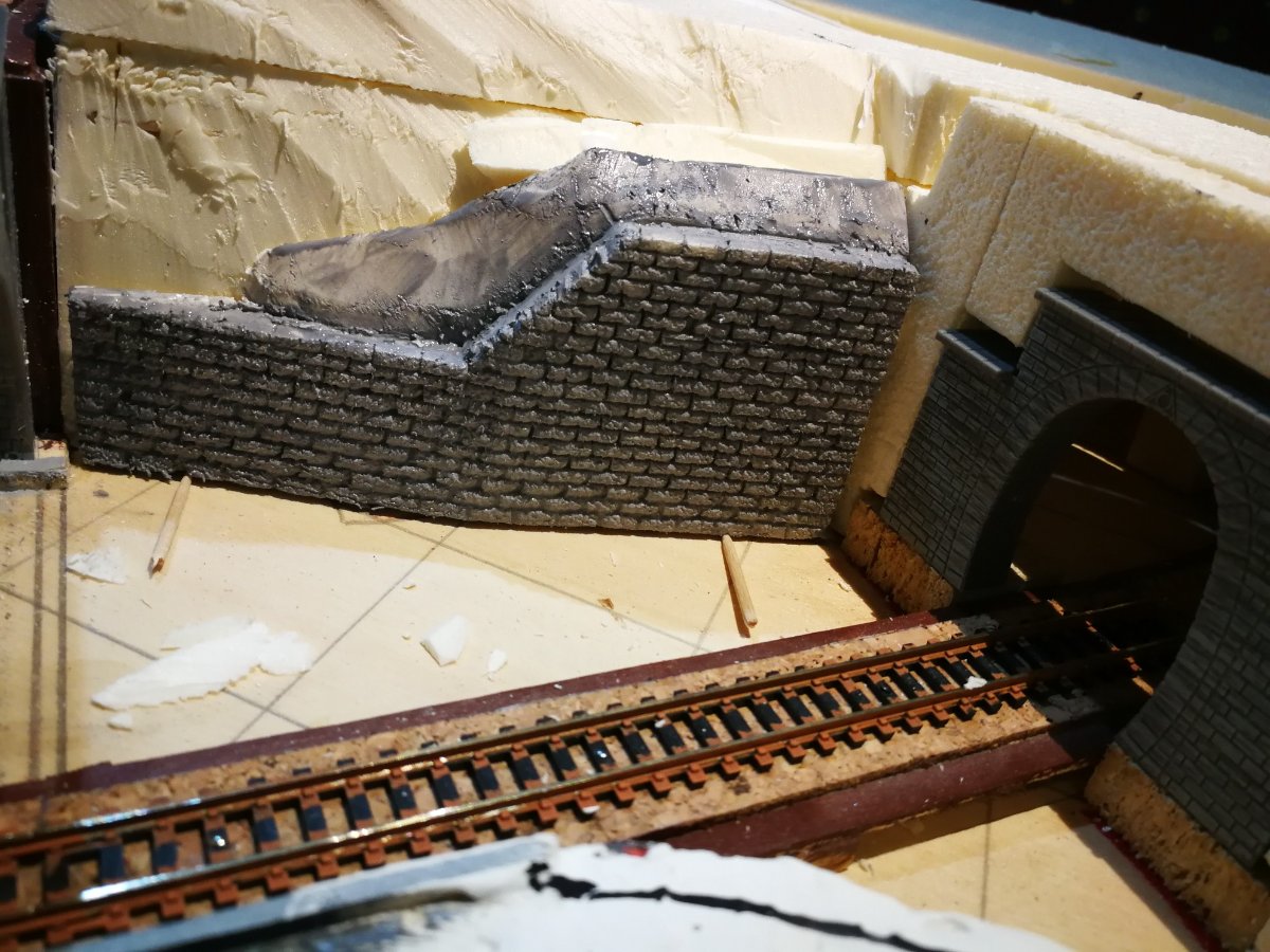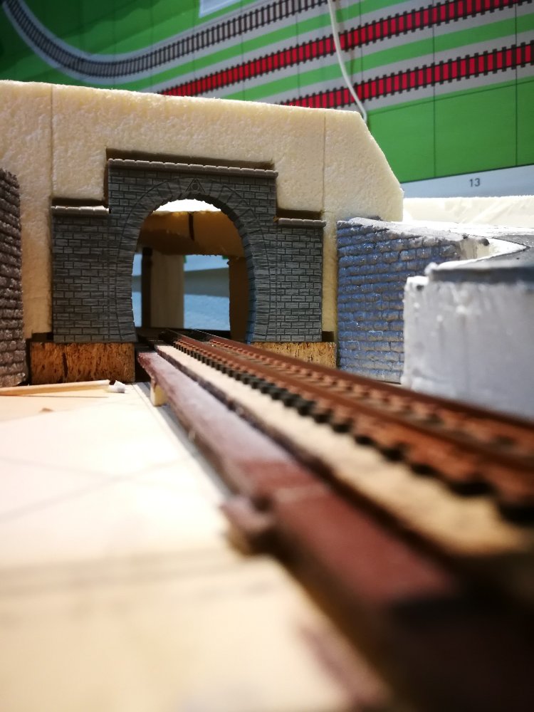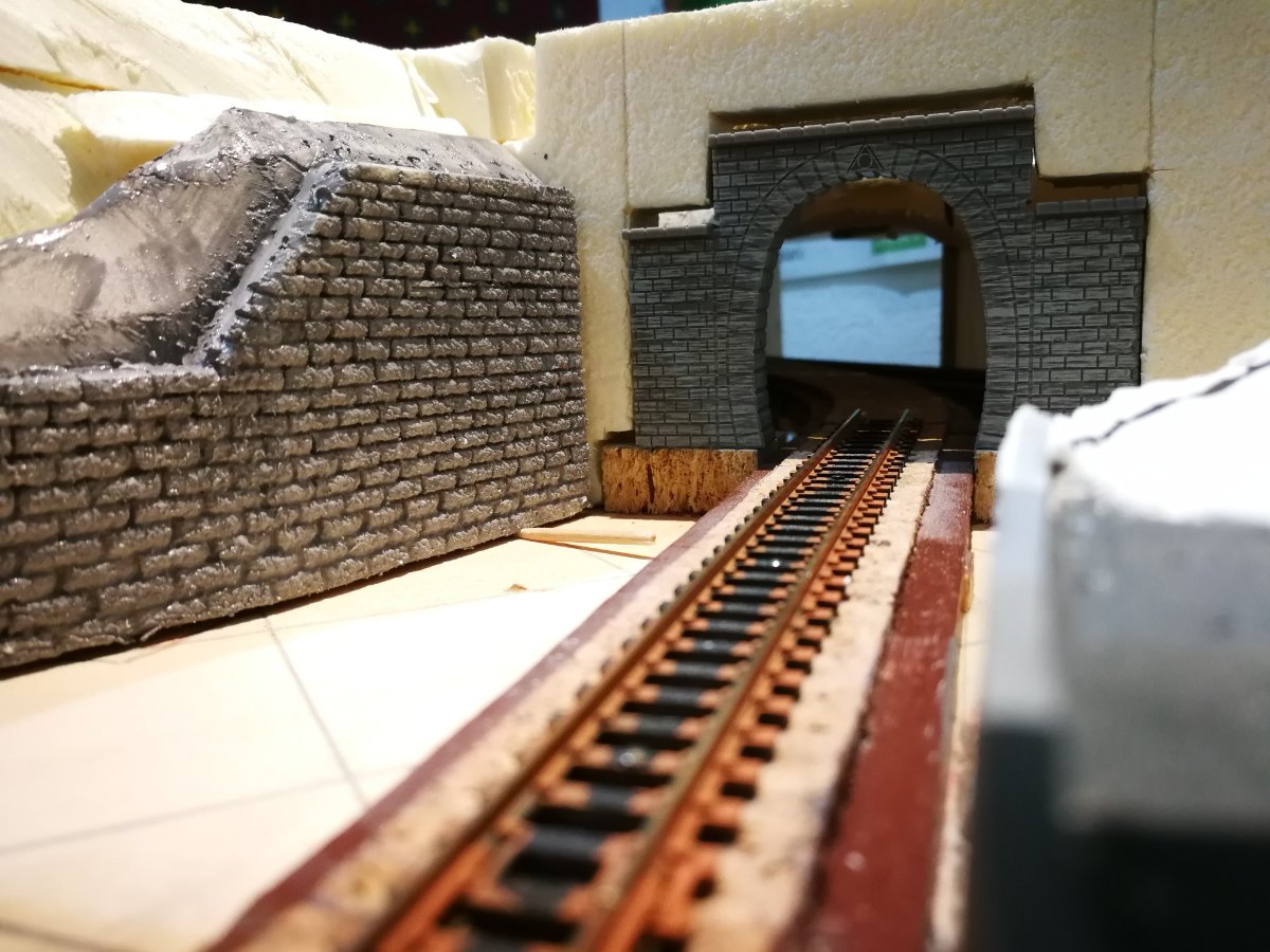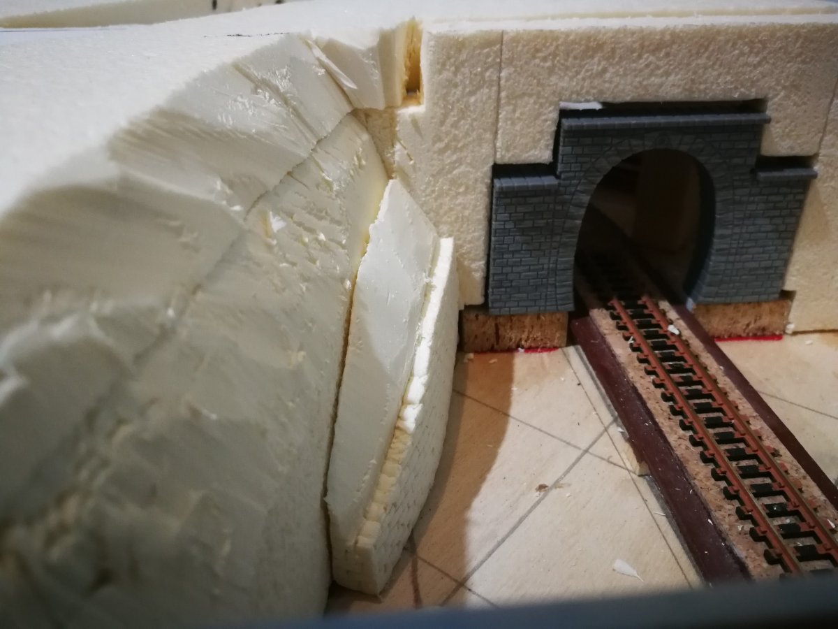 Se posso darti un consiglio rastremerei anche la parte sopra il portale un 45° di inclinazione non stonerebbe, raramente il portale è a picco contro la parete della montagna, tendenzialmente parte prima proprio per proteggere la linea o la strada da un eventuale caduta massi.