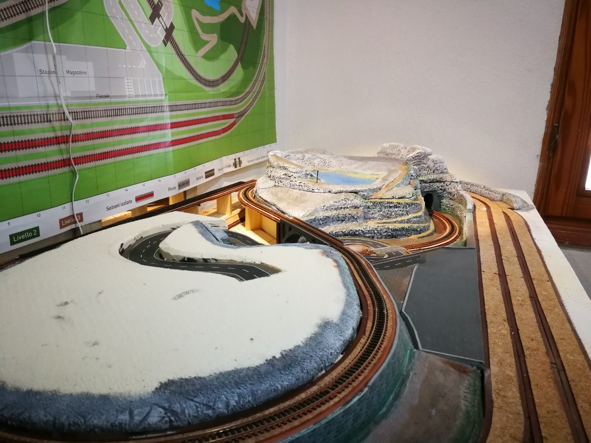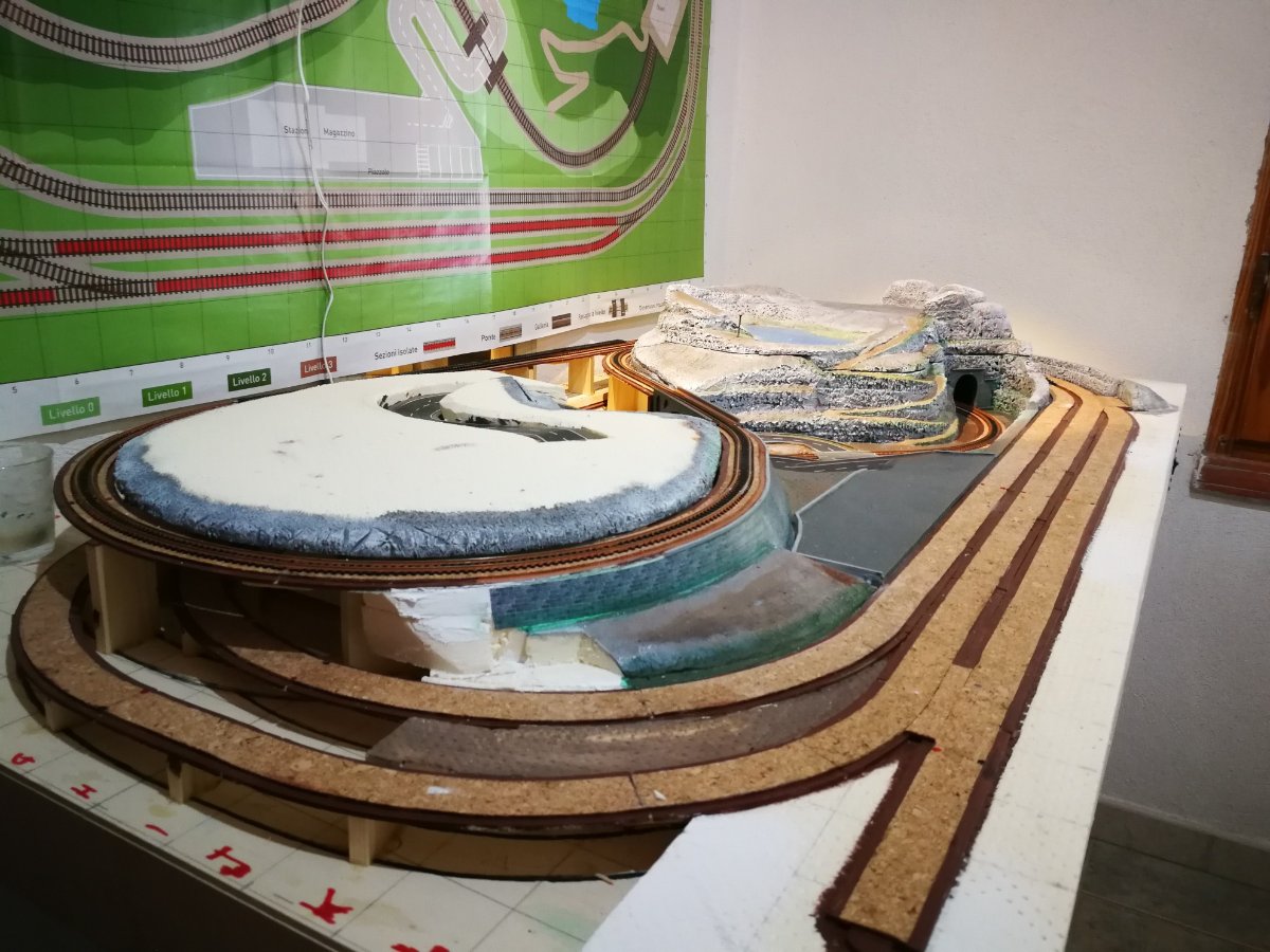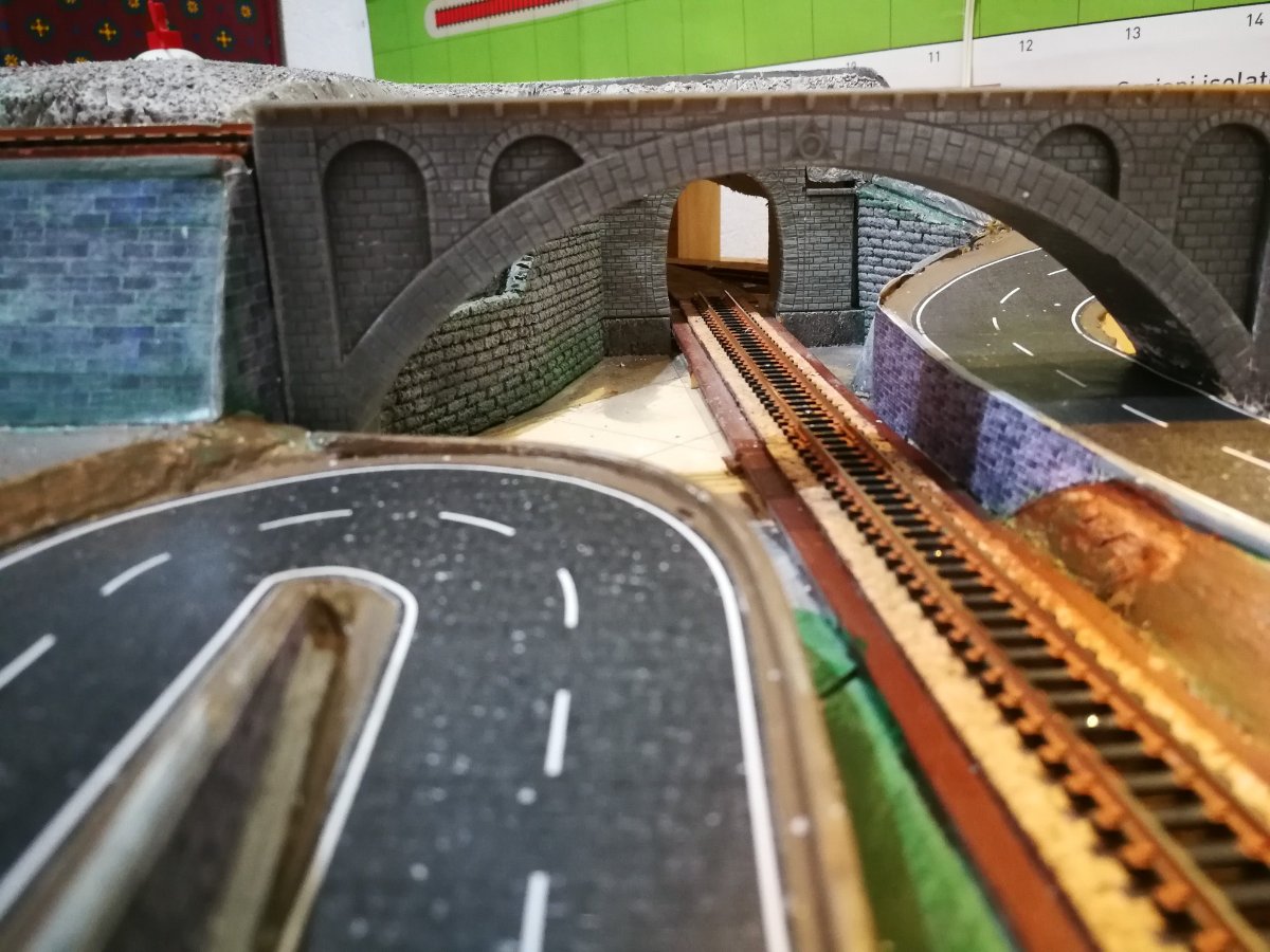 Vedendo le foto sopra ho visto che non hai ancora fatto la massicciata sul tratto che passa da sopra il ponte....quindi la mia domanda è la seguente: siccome in qualche tuo post precedente dimostravi come effettuare la saldatura sulle scarpette volevo sapere se in quel tratto metterai qualche cavo di alimentazione supplementare su qualche binario o basta alimentare le scarpette solo nei punti suggeriti dalla DeA?.... [101]