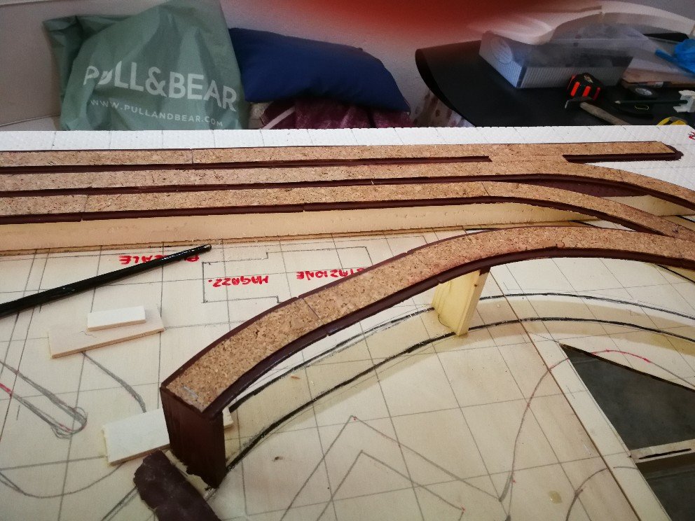 Onestamente però mi trovo d'accordo con Alceo, io avrei aspettato di avere tutti i binari, fatte le dovute prove di circolabilità e solo dopo avrei iniziato a posare la massicciata,(avrei messo anche il sughero) se ci fossero dei problemi, speriamo di no, senza massicciata è più semplice rimediare, ti consiglio per la restante parte di aspettare, poi fai come meglio credi