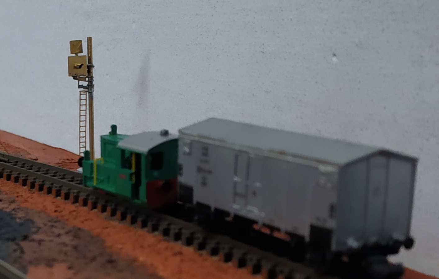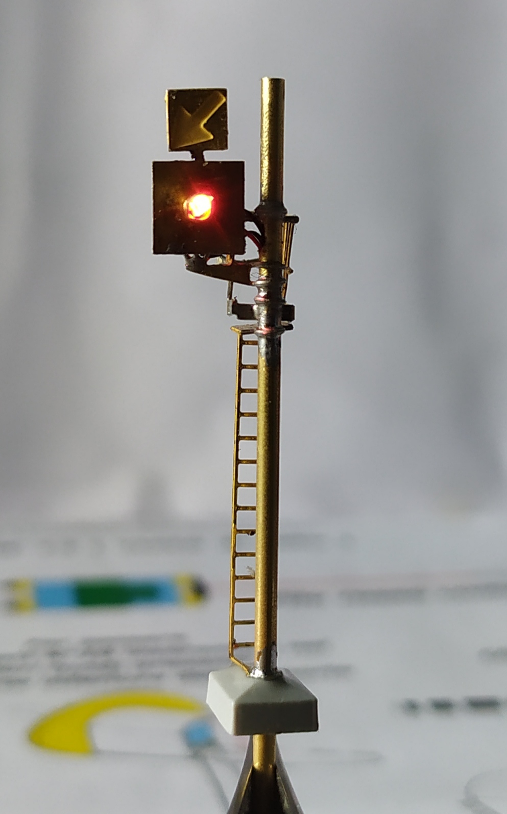 oggi ho assemblato l'ultimo dei 5 segnali del diorama a mensola. É sempre a vela quadra perché è a destra del binario come visibile in foto: