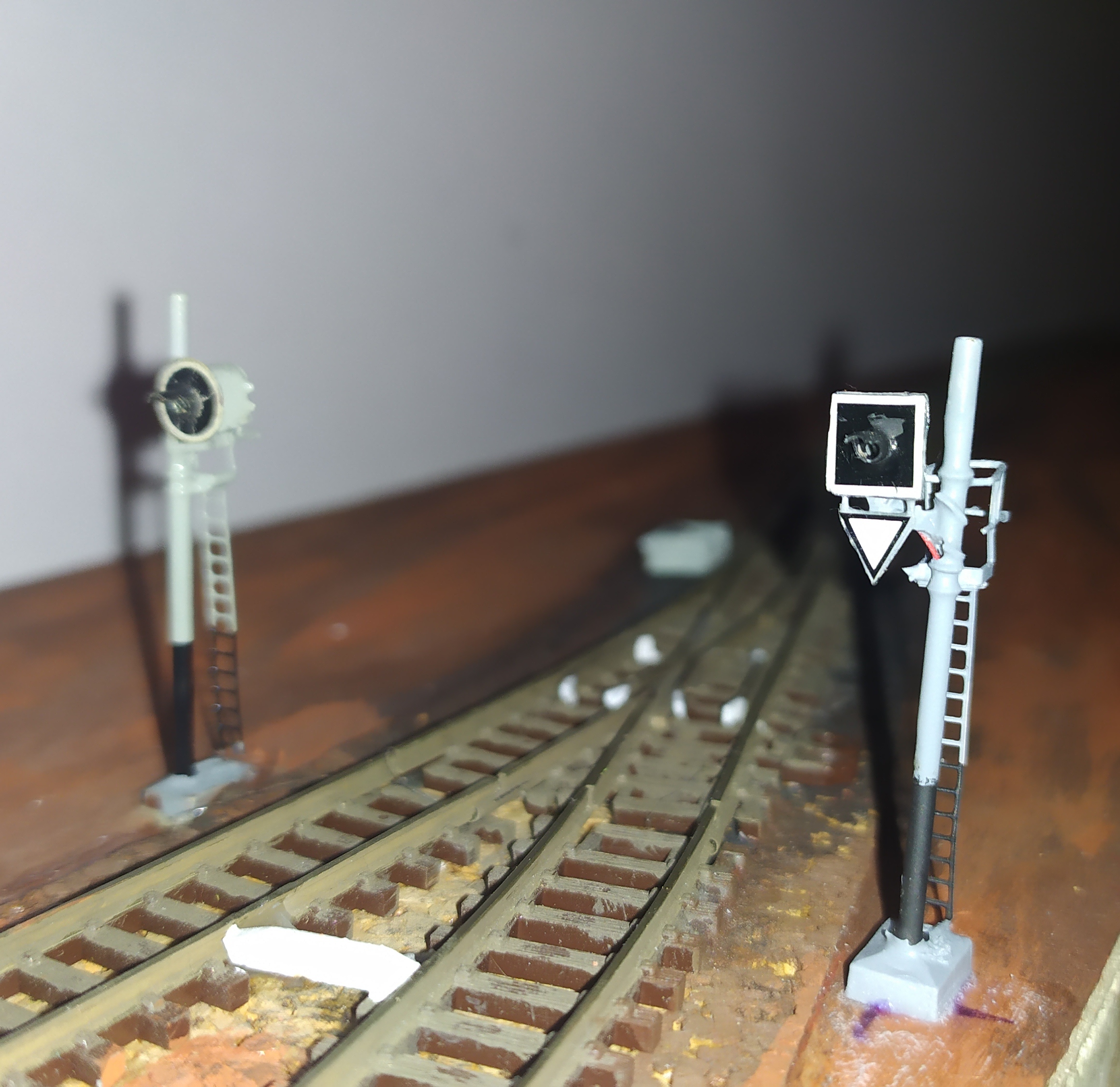 Su dai :-), vi ricordo che è un piccolo diorama e mi piace che ci siano dei segnali luminosi. Comunque la foggia delle vele indica a quale binario si riferisce il segnale e se esso è in posizione corretta (la banalizazione è un'altra cosa, ma si usa anche in quel caso).