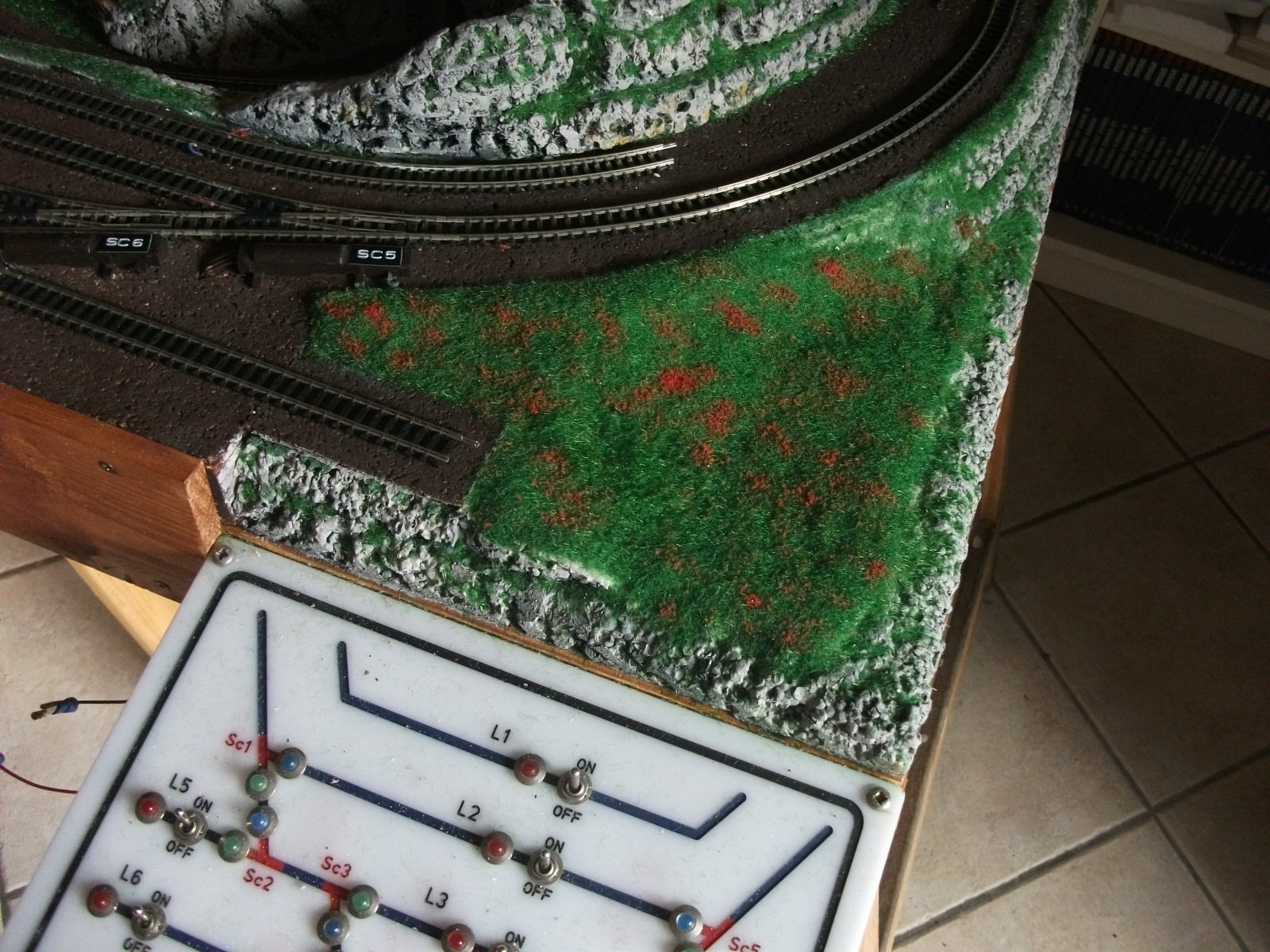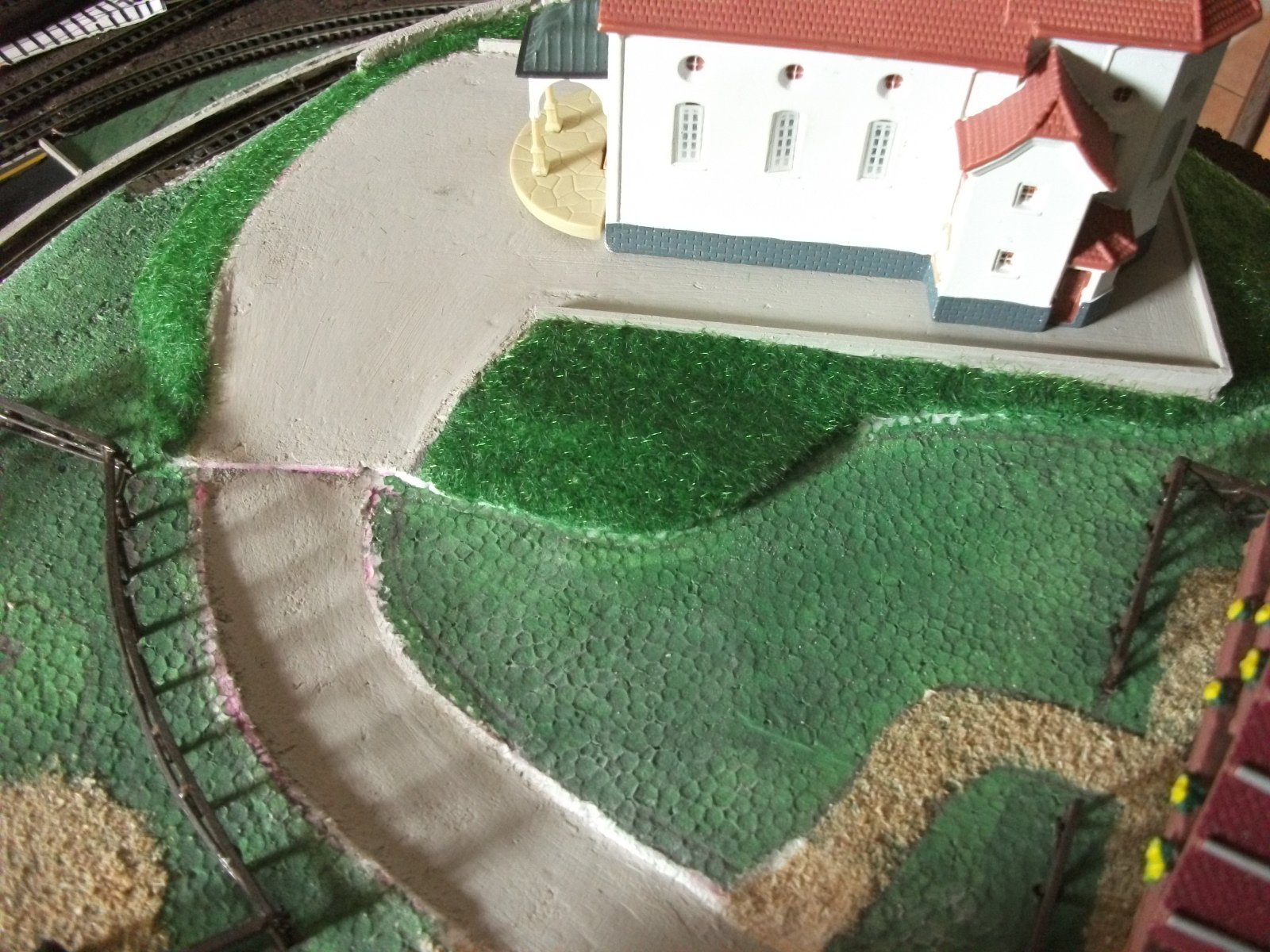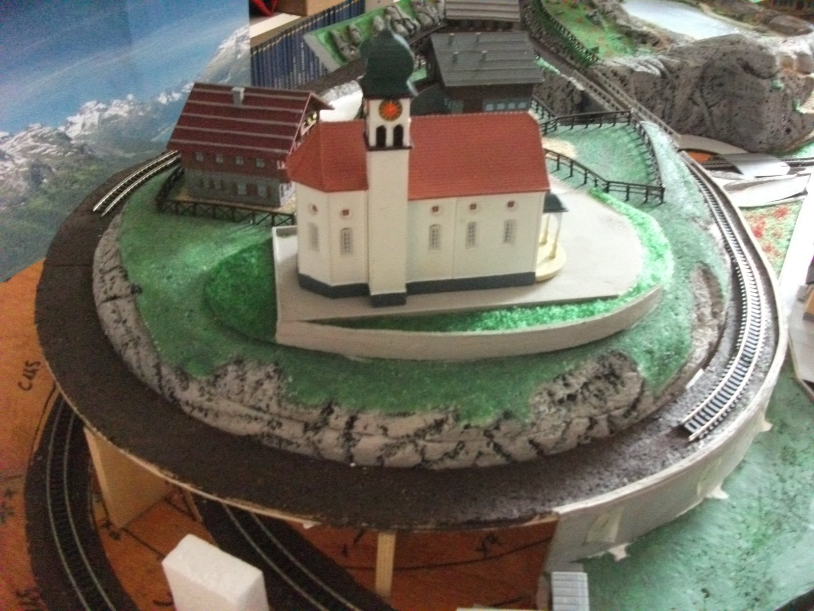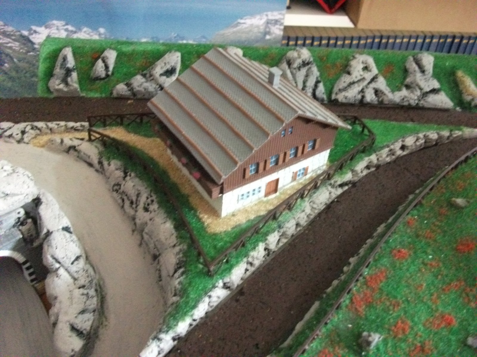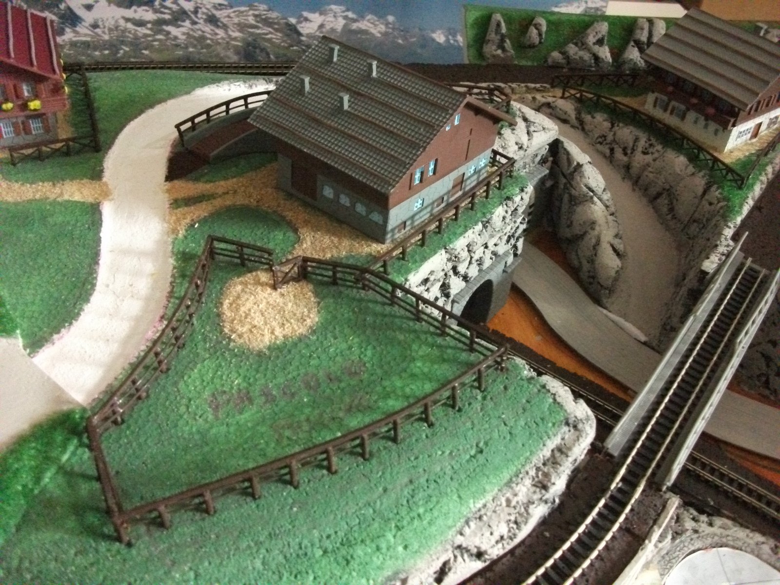 Ora sto pensando di fissare i binari sotto le due alture (sono amovibili) e posare il ballast agli imbocchi delle gallerie.