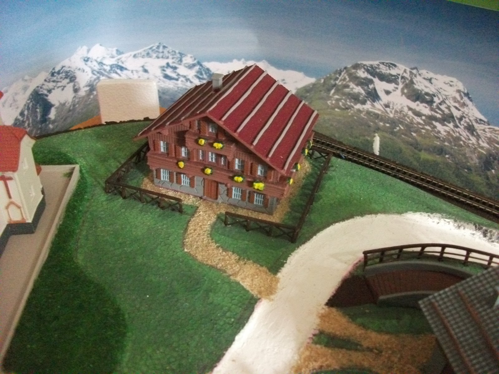 La cosa strana è che non sia stato previsto nessun ostacolo, o recinzione affinché gli animali non invadano la ferrovia o precipitino nella strada sottostante la fattoria, forse le mucche svizzere sono più intelligenti ed accorte delle nostre................
