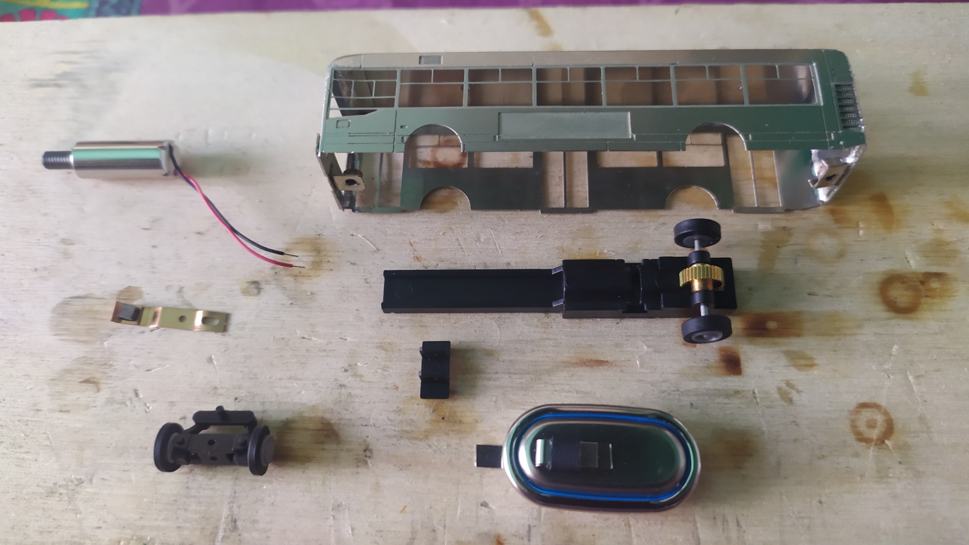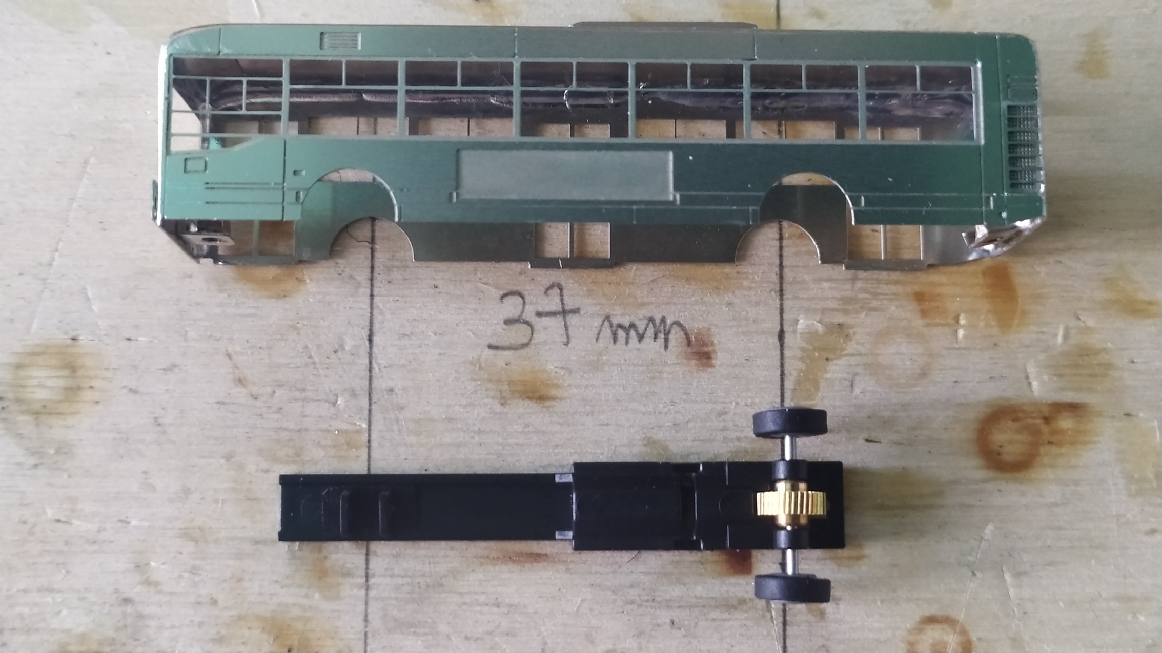 - un telaio in scala N a 2 assi a passo variabile completo di motore per la realizzazione di un autobus o autocarro;