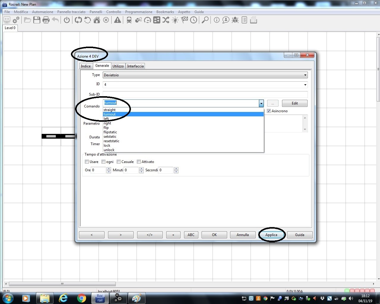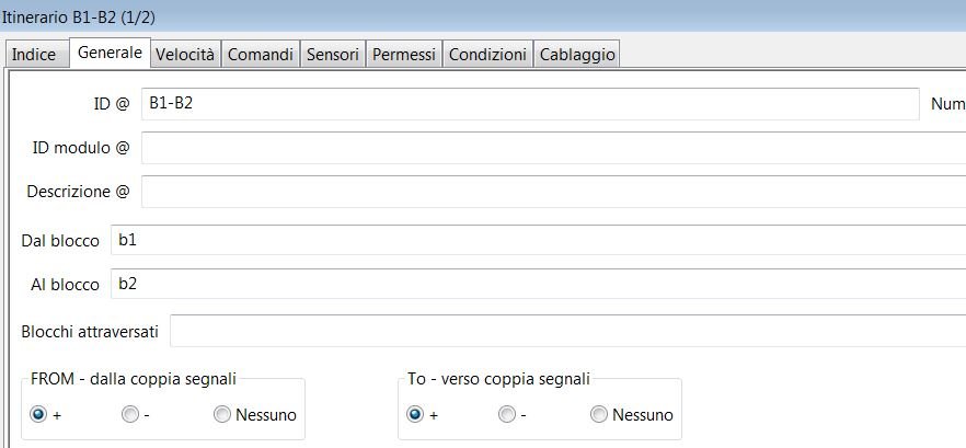Nel definire l'itinerario devi anche specificare, nella pagina 'Comandi' dell'oggetto itinerari, come devono comportarsi gli scambi.