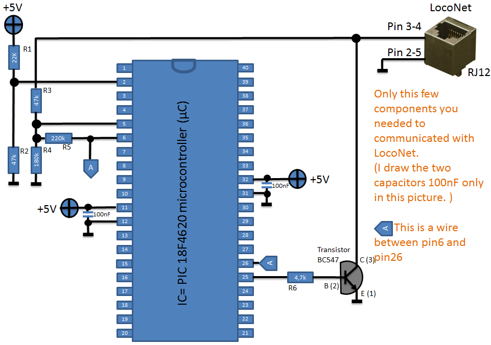 la linea continua delimita la componentistica minima per dialogare con il bus loconet