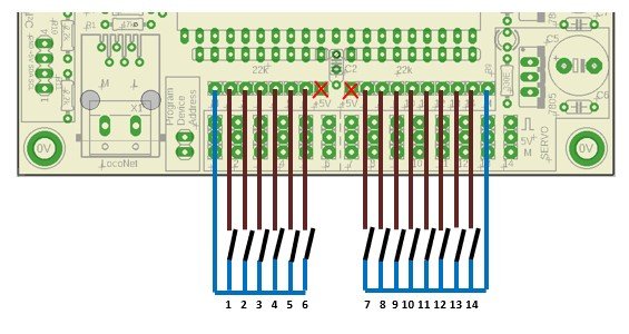 Esempio di scheda solo ingressi con alimentazione da bus loconet