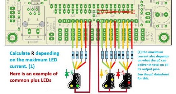 Le uscite possono comandare servo, scambi con bobina (Peco), relè e led.