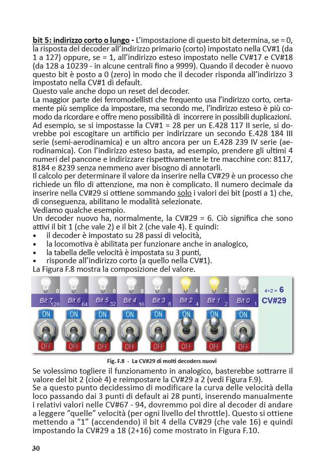 Impostando il valore 6, ad esempio, nella CV29 si hanno i 28/128 passi di velocità ed il funzionamento anche in analogico.