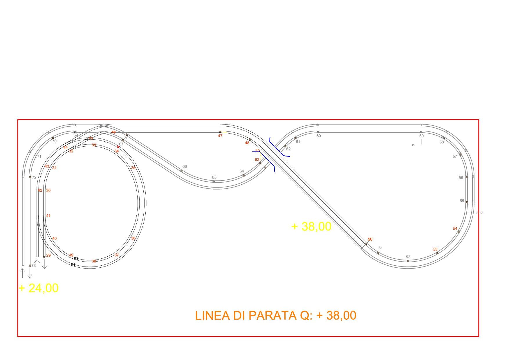 cappio di ritorno con un finto doppio binario. La linea di parata è costituita da due anelli di ritorno che