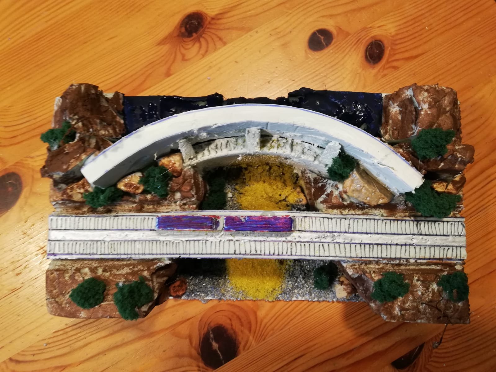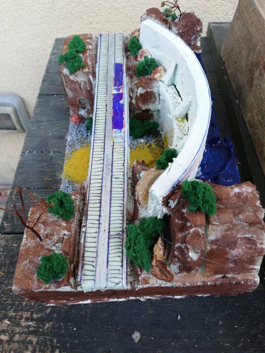 Nella simulazione, la vicinanza del ponte alla diga sembra eccessiva, ma credo che nel modulo essa risulterebbe meno appariscente. Ma su questo devo ragionare meglio. Eventualmente, come suggerito da Gianluca, che ha già visto la simulazione, potrei passare dai 55 cm. standard ai 75-80.