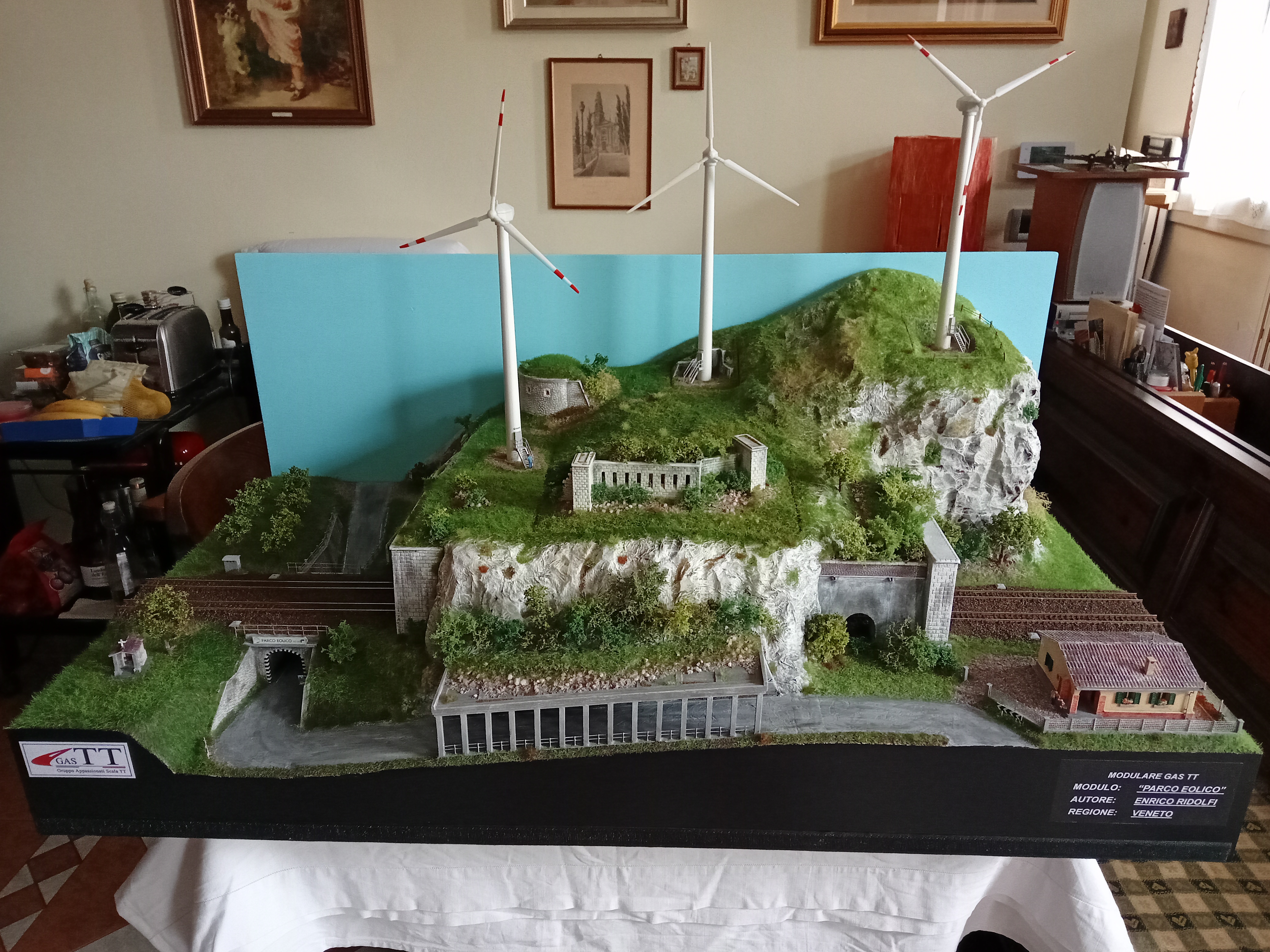 Come suggeritomi durante la fiera di Verona, ho esteso il fondale-cielo del modulo per adeguarlo all'altezza delle pale e renderle così meglio visibili.