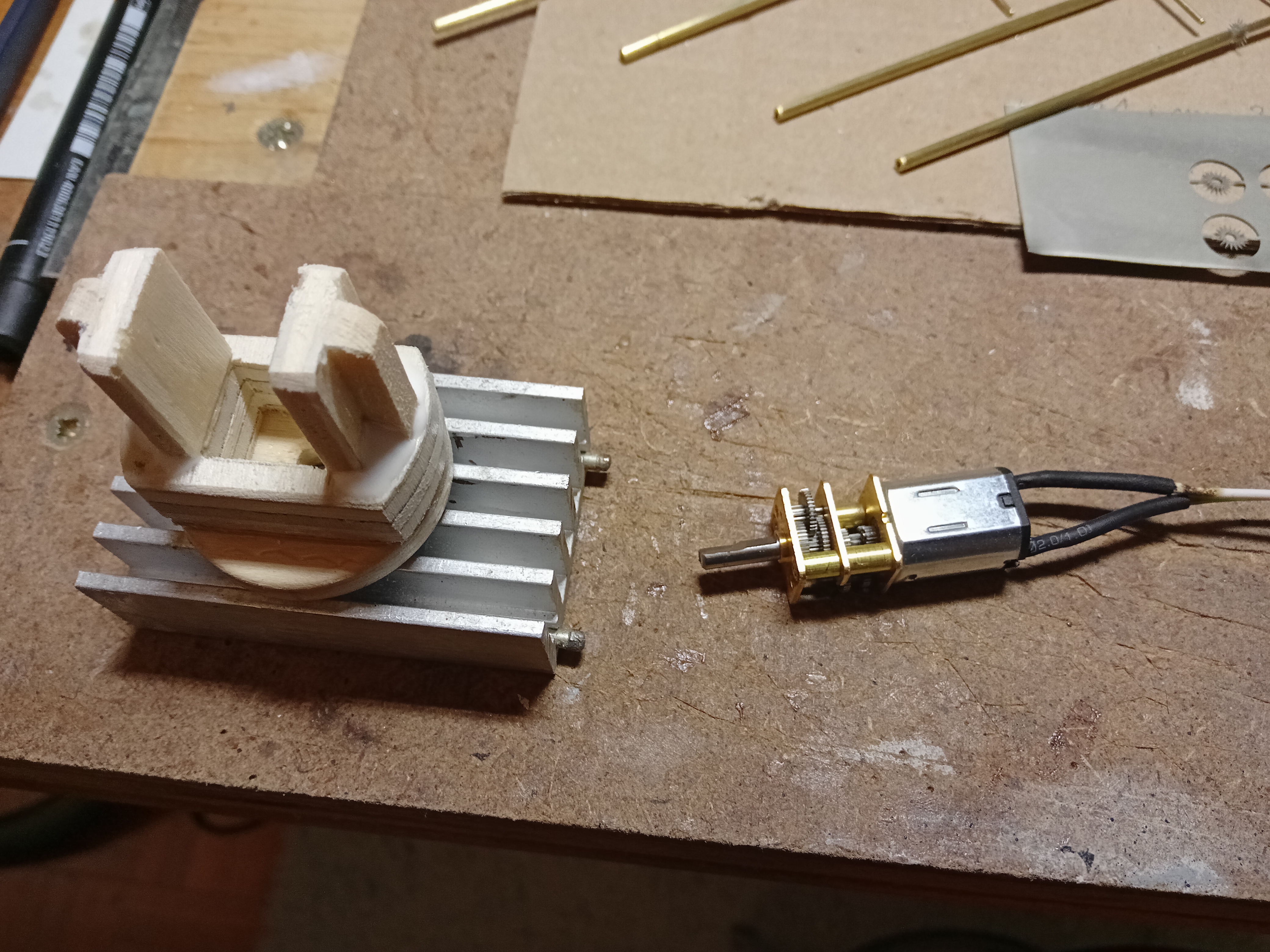 Ho sostituito i motori delle pale (a corrente alternata) con dei nuovi micro motori a corrente continua dotati di riduttore di giri (circa 20 giri al minuto), ho costruito una sede adatta per inserirli alla base delle pale.