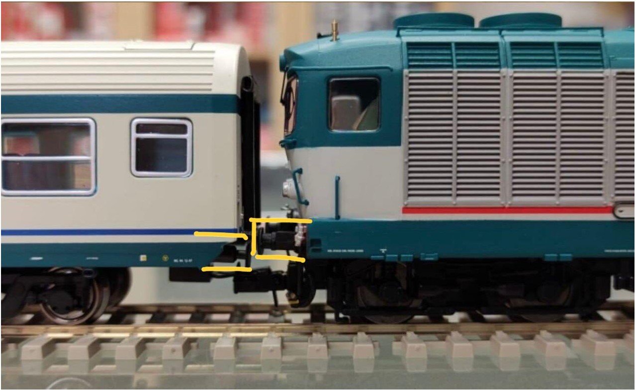 Contrariamente a quanto scritto nelle istruzioni, la cassa si sfila senza togliere i respingimenti. L’ho provata brevemente con un decoder da battaglia…non si accendevano le luci rosse.