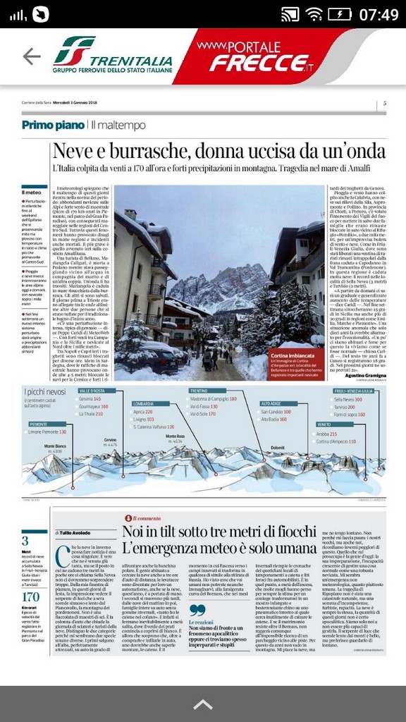 Il treno parte in orario alle 7:30, quindi si immette sulla linea ad alta velocità per Milano. A bordo vengono distribuiti i quotidiani, nonché snack e bevande calde e fredde. La ripresa è rapida ed il treno raggiunge abbastanza velocemente i 300 km/h, ma la marcia non è particolarmente silenziosa e stabile. Il treno è rumoroso e a tratti si avvertono distintamente numerose vibrazioni. Viaggiando spesso a bordo dei treni ad alta velocità non si può fare a meno di notare come esistano alcuni esemplari che sono silenziosi e stabili, mentre altri sono più rumorosi e instabili. Il confort a bordo è solitamente migliore per gli ETR 500 "Frecciarossa", anche se le prestazioni, sopratutto di accelerazione, sono migliori per gli ETR 400 "Frecciarossa 1000". Tuttavia, il comfort percepito a bordo, è strettamente legato alla situazione di manutenzione dei treni. Pur rimanendo sempre all'interno degli intervalli di manutenzione previsti, si nota che rumore e vibrazioni sono praticamente inesistenti quando si utilizzano treni che hanno appena subito gli interventi di manutenzione, mentre la situazione non è ideale per i mezzi che si avvicinano alla scadenza manutentiva. Talvolta, nel salire a bordo, è possibile notare le date delle ultime manutenzioni eseguite, nonché è possibile notare i carrelli ancora puliti e che presentano i vari riscontri di vernice apposti in officina durante le manutenzioni. Su questi treni si noterà anche che il confort a bordo è decisamente maggiore, con una presenza praticamente nulla di rumore e vibrazioni durante tutte le fasi del viaggio. Il treno su cui viaggiamo è entrato in servizio nel 2015 e non ha ancora subito interventi di manutenzione pesante.