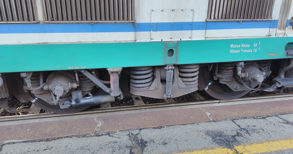 A bordo la frequentazione è discreta, con un buon interscambio di passeggeri in entrambe le stazioni di Milano Porta Garibaldi e Milano Rogoredo. Lasciamo il nodo di Milano alle 8:40 circa, quindi ci immettiamo sulla linea ad alta velocità per Bologna. Il viaggio prosegue a velocità comprese tra i 280 e i 295 km/h per circa 30 minuti, quindi il treno inizia a rallentare in vista della fermata a Reggio Emilia AV Mediopadana. Il treno rallenta in piena linea fino ai 60 km/h, quindi impegna i deviatoi della stazione, che portano i treni ai due binari dotati di banchina dedicati alla sosta. Il treno ferma a Reggio Emilia AV Medipadana, mentre due altri treni che erano dietro al nostro sfrecciano a 300 km/h sul binario attiguo, ora libero. Il transito dei treni in piena velocità provoca un notevole spostamento d'aria e si nota anche che la catenaria, alimentata a 25 kV in corrente alternata, ondeggia notevolmente dopo il passaggio dei treni. Questa osservazione mette in luce le varie difficoltà di captazione che si hanno con treni potenti che marciano ad elevate velocità.