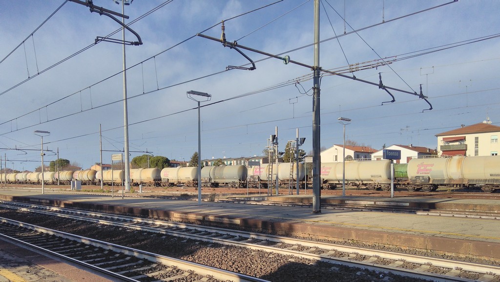 Nella stazione di Faenza stazionano numerosi carri cisterna della ditta Lotras, che si occupa di trasporto del vino verso lo stabilimento Caviro. Questo stabilimento è posto alla periferia della città e produce anche il famoso "Tavernello". I treni giungono principalmente dalla zona del Tavoliere delle Puglie, trasportando il vino prodotto in quelle zone che poi viene lavorato a Faenza.