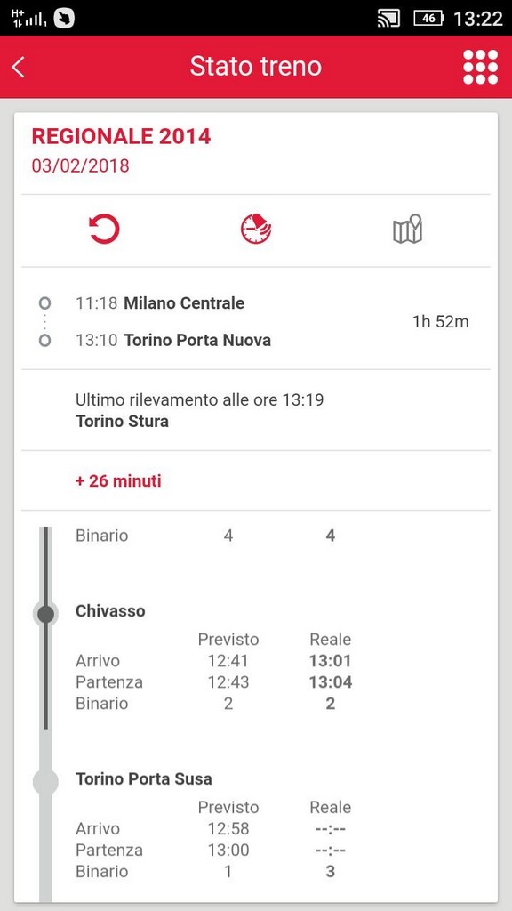 Arrivo a Piossasco alle 14:52, con 43 minuti di ritardo rispetto alla previsione.