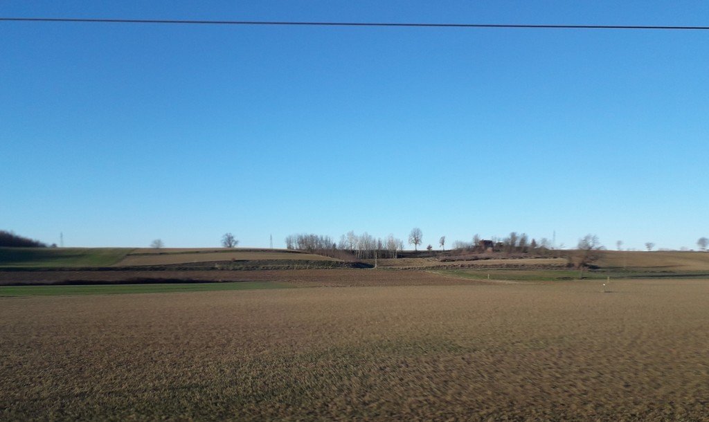 Il treno parte in orario alle 7:25, quindi ferma a Torino Porta Susa ed imbocca la linea ad alta velocità per Milano. La giornata deve ancora iniziare, mentre la nottata è stata abbastanza fredda, con temperature comprese tra -5 e -3°C e diffuse gelate. Il viaggio prosegue tranquillo e senza inconvenienti, il treno è stabile e silenzioso, anche se si avvertono a tratti alcuni scossoni, probabilmente dovuti ad uno stato della linea ferroviaria non ottimale. il treno viaggia a velocità comprese tra i 280 ed i 300 km/h lungo l'intera tratta da Settimo Torinese fino nei pressi di Rho, dove inizia il nodo ferroviario di Milano. Attraversiamo l'alta Pianura Padana quando il sole comincia a sorgere, mentre la luce prevale quando siamo in vista di Novara. A bordo la frequentazione è discreta e rimangono alcuni posti liberi.