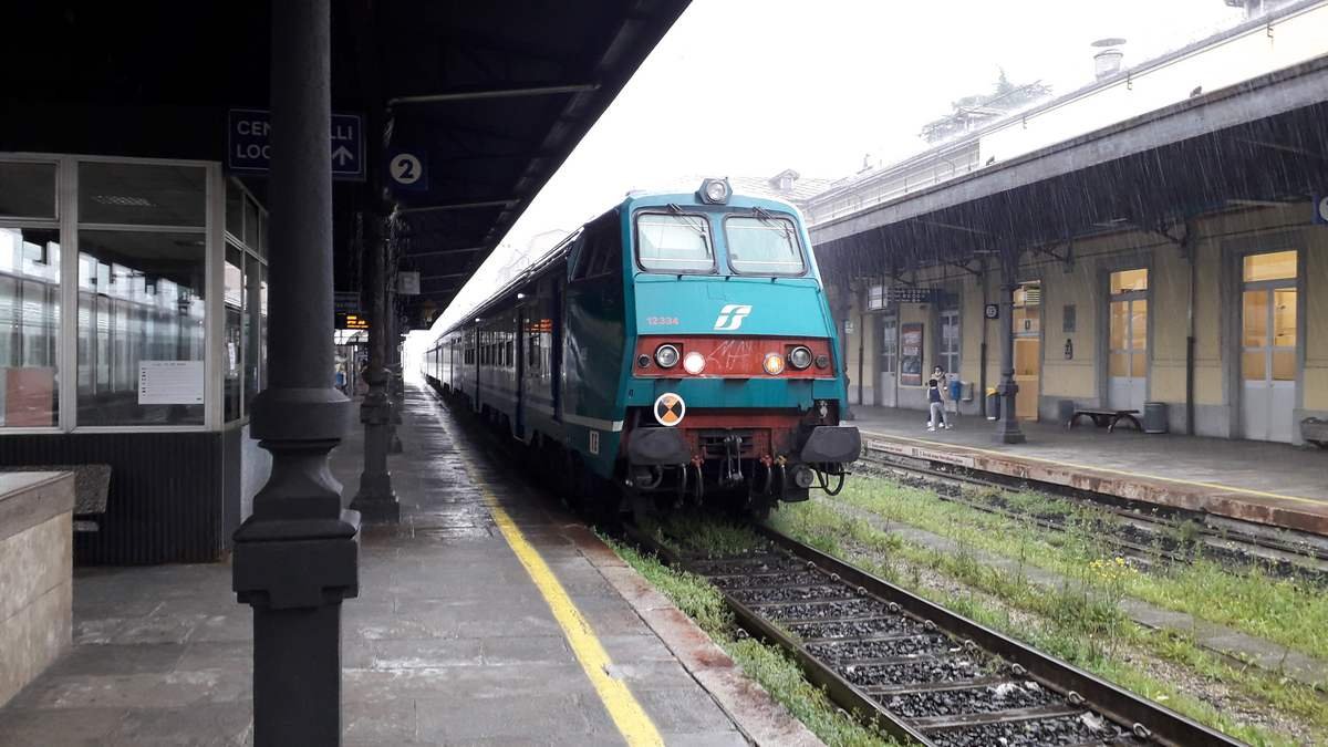 Parto alle 10:54 dalla stazione di Torino Porta Nuova, quindi giungo a Novara alle 12:03 con il treno Regionale Veloce 2013 per Milano Centrale. Il treno per Domodossola, il Regionale 10246, è pronto alla partenza al binario 6. Il mezzo è una composizione di 4 vetture Medie Distanze, di cui una semipilota, una MDVE e due MDVC. In coda in spinta c'è una locomotiva elettrica E 464.