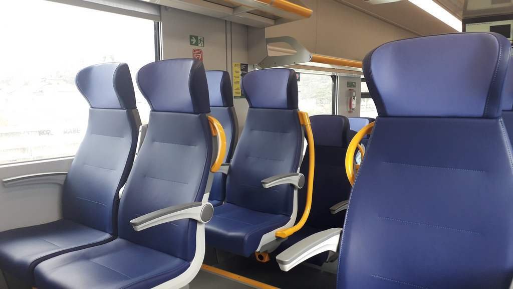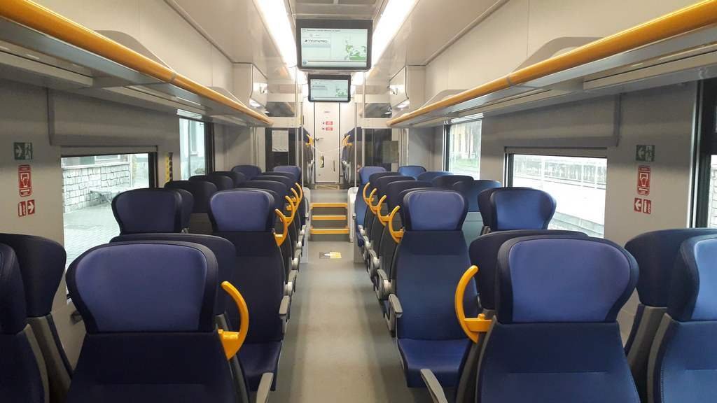 Salgo a bordo del treno, che si presenta in ottime condizioni di ordine e pulizia. Gli spazi interni sono molto ampi e luminosi, finestrini sono molto ampi e garantiscono una ottima visuale esterna e luminosità interna, decisamente superiore rispetto agli altri treni. I sedili sono dotati di ampi poggiatesta e rivestiti in similpelle blu, abbastanza comodi privi di supporti a pavimento, cosa che agevola molto le operazioni di pulizia, così come l'utilizzo della similpelle in luogo del tessuto, più soggetto a trattenere lo sporco. Gli spazi per i bagagli sono previsti in corrispondenza dei vestiboli ed in cappelliere al di sopra dei sedili, in ogni caso gli spazi sono sempre abbastanza ampi per poter accogliere numerosi bagagli. A bordo sono disponibili monitor informativi, sistemi audio, prese elettriche e USB per la ricarica di dispositivi mobili. L'accesso al treno avviene tramite ampi vestiboli ed accesso a raso, così come i passaggi interni che sono sempre abbastanza ampi e con rampe di inclinazione mai troppo elevata. Nel complesso il treno restituisce un aspetto moderno e funzionale, con livelli di confort del tutto sufficienti a garantire viaggi confortevoli per le durate tipiche previste per questo tipo di treni. I treni sono pensati per le relazioni a media frequentazione in aree rurali e suburbane, per tragitti non superiori alle due ore.