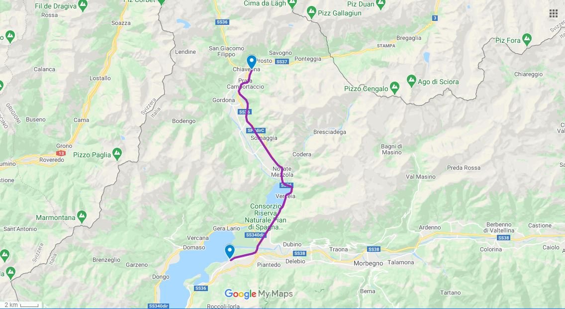 Itinerario del viaggio da Colico a Chiavenna