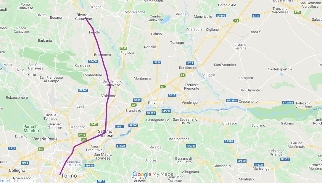 Lasciamo la stazione di Torino Porta Susa e quindi giungiamo a Torino Rebaudengo e Stura, per poi uscire dal passante ferroviario e arrivare a Settimo, dove inizia la linea ferroviaria canavesana vera e propria. Dopo la fermata in stazione una stretta curva a sinistra ci porta sulla canavesana, una ferrovia "concessa" che in passato era esercita da Satti e GTT. La linea ferroviaria, a singolo binario, collega Settimo Torinese con Rivarolo Canavese, da dove è poi possibile procedere verso Pont, capolinea finale della linea. Percorriamo la stretta curva a circa 30 km/h, poi ci dirigiamo verso Volpiano, San Benigno e Bosconero, viaggiando sempre in orario. La frequentazione a bordo è buona, oltre il 50% dei posti sono occupati e in tutte le stazioni c'è un buon interscambio di passeggeri. Il treno su cui viaggiamo è un ETR 104 "Pop", un mezzo nuovo e da poco entrato in servizio su questa linea. Il mezzo ha delle ottime caratteristiche di accelerazione e si muove garantendo buoni livelli di confort. A bordo sono disponibili prese elettriche, prese USB per la ricarica rapida di smartphone e tablet, monitor informativi ed annunci audio per le indicazioni si itinerario e fermate. Nonostante le buone prestazioni del treno e la linea poco impegnativa, senza curve o livellette, il treno marcia sempre molto lento, non superando mai la velocità di 70 km/h. La linea non è dotata di dispositivi automatici di protezione della marcia dei treni, quindi tutti i mezzi devono circolare alla velocità massima di 50 km/h oppure 70 km/h in presenza di due agenti alla condotta. La gestione prevede la presenza di due agenti alla condotta, quindi il mezzo marcia fino a 70 km/h.