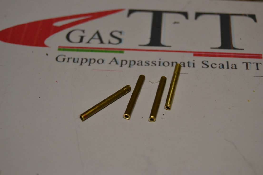 Ho poi tagliato 4 pezzi di tubo di ottone da 2 mm di diametro, lunghi 25 mm.