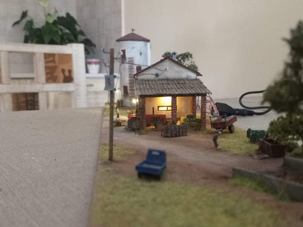 Ho solo una piccola osservazione, ma prendila con le pinze: vedo che il tetto della tettoia a lato della casa è un po' incurvato, perché è poggiato direttamente sulle colonne e alla parete. Mi sarei aspettato, sotto, un'intelaiatura di travi come (presumo) al vero... Ma ripeto che è una piccolezza, che forse ad occhio nudo nemmeno si nota e non toglie nulla alla bellezza dell'opera!
