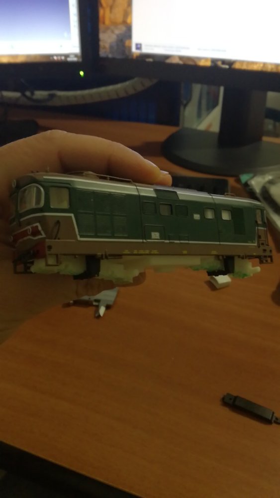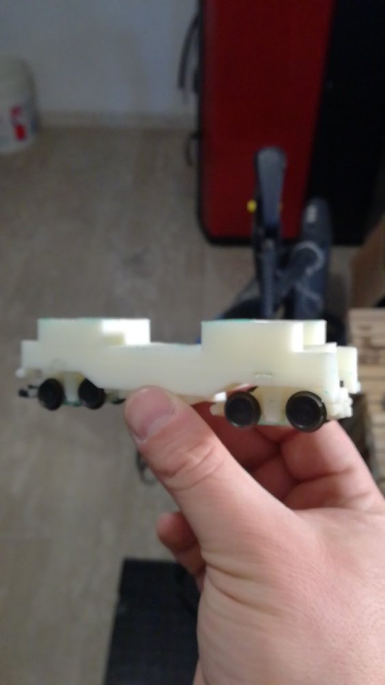 era da tempo che non scrivevo più sul forum. Ultimamente ho ricominciato a smanettare con una stampante 3D e ho pensato di usarla nel nostro bellissimo hobby. Avevo l'esigenza di avere una loco folle e leggera per il mio treno storico, più precisamente una D343 e cosi ho smonato la mia d345 roco e disegnato in 3D il telaio, i carrelli e tutto il necessario per avere una dummy funzionante. Questo è il risultato.
