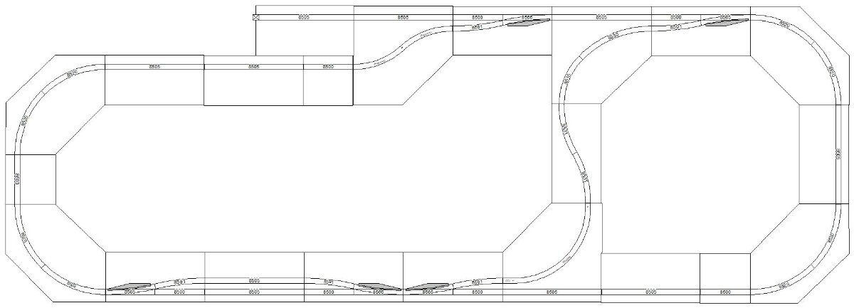 La geometria è un po' diversa dai Deister-Dielen XS: il modulo curva è da 220x220 mm e conseguentemente, in quello rettilineo da 220x110, il binario ha l'asse distante 25 mm dal bordo.