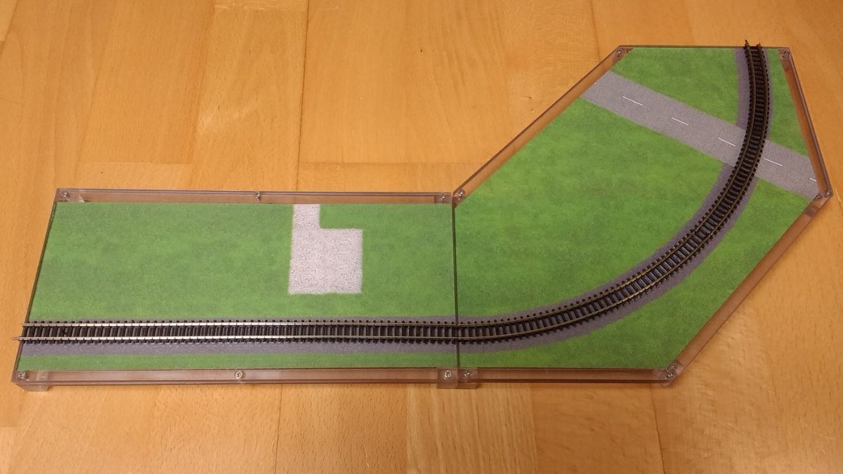 Questi sotto sono i prototipi di due moduli, in stile Zen, ma si possono fare anche di legno, con la massicciata e il paesaggio normale: