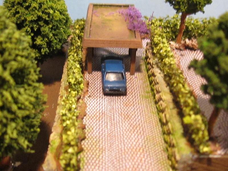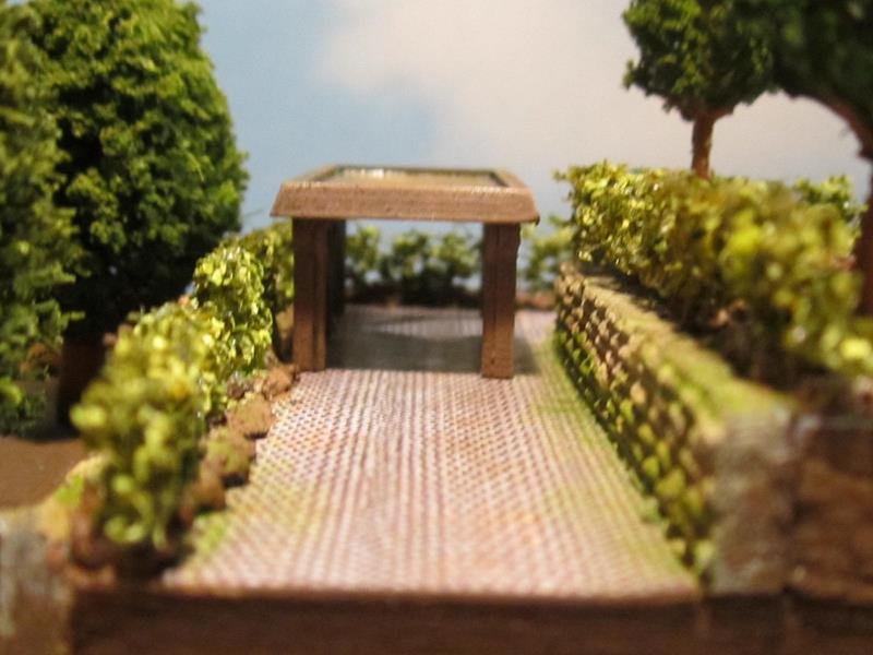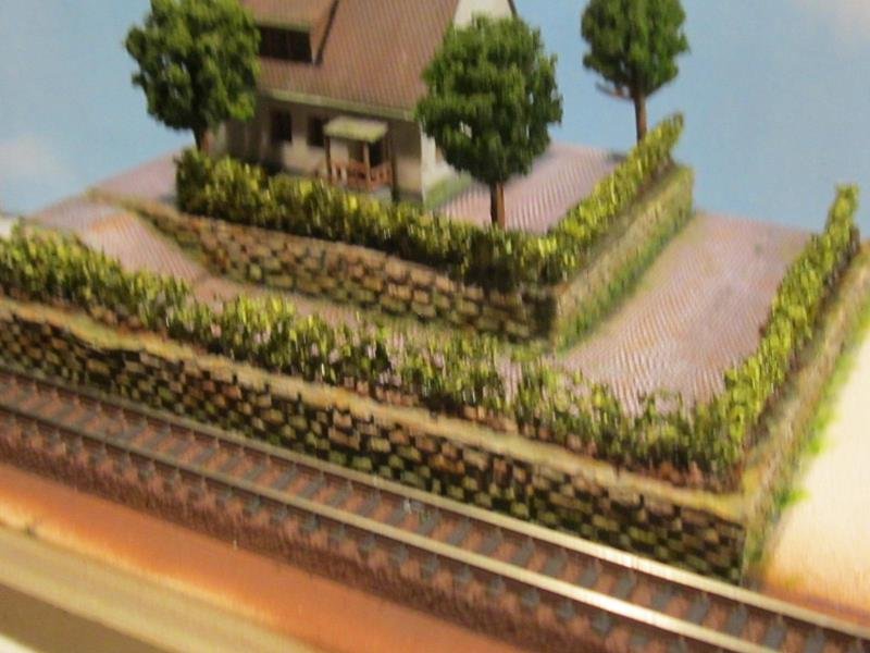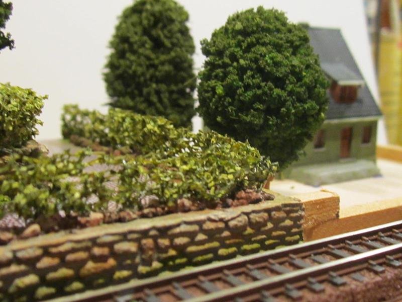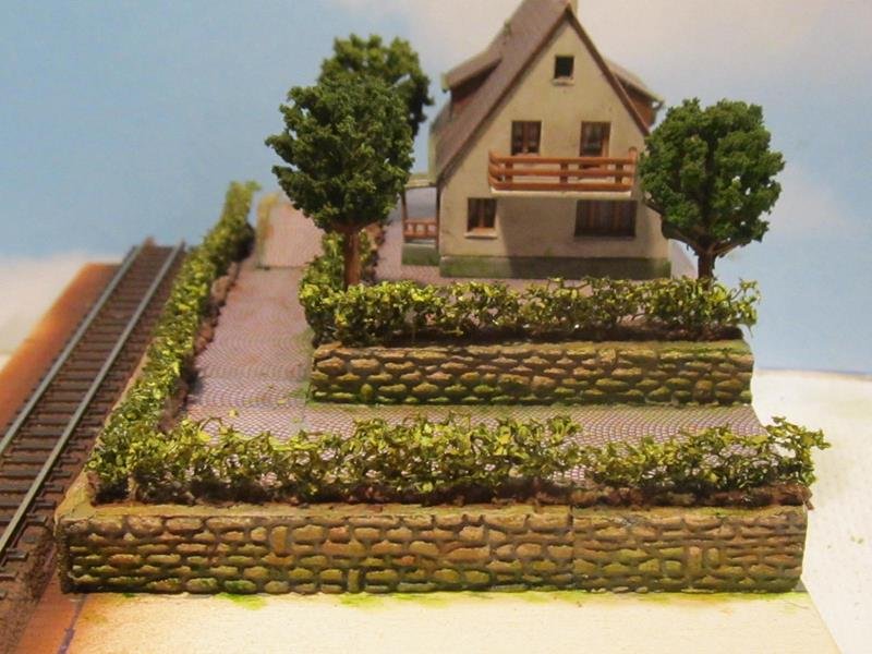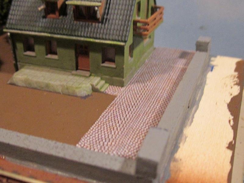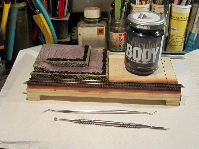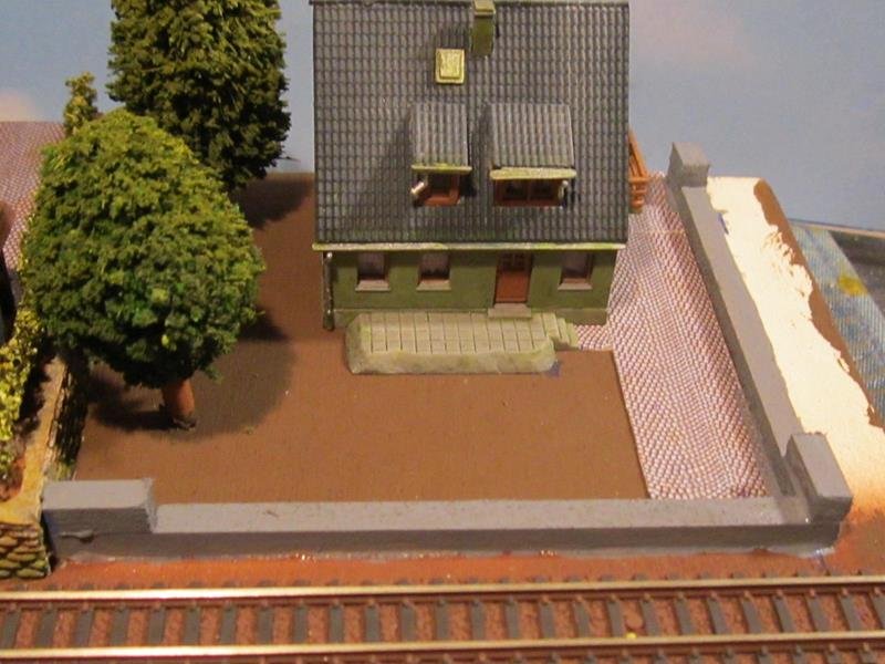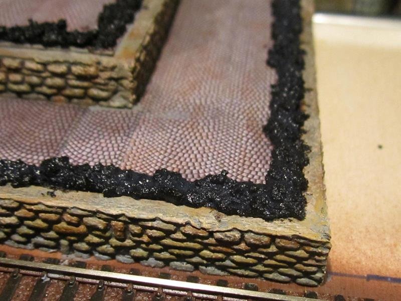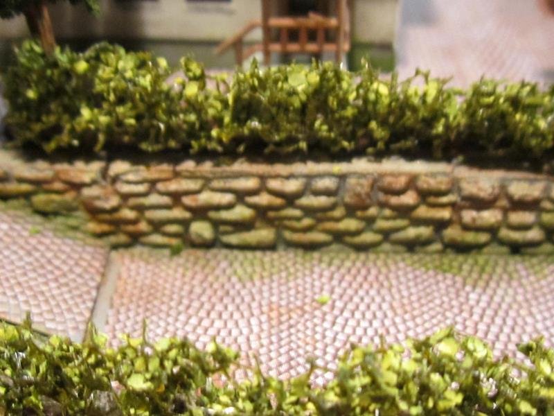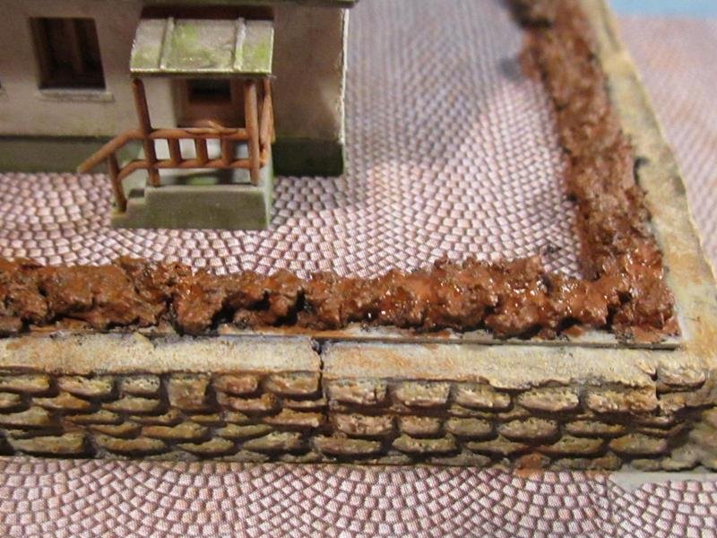 bene, dopo aver passato il film ad olio per uniformare le varie sfumature di colore sui muretti ho provveduto a creare la striscia di terreno dove ospiterà la siepe e qualche alberello ornamentale.