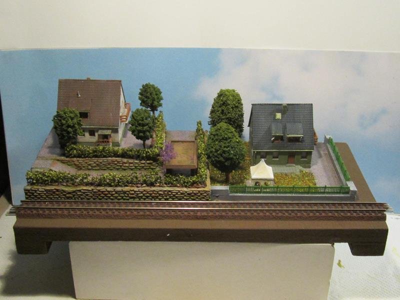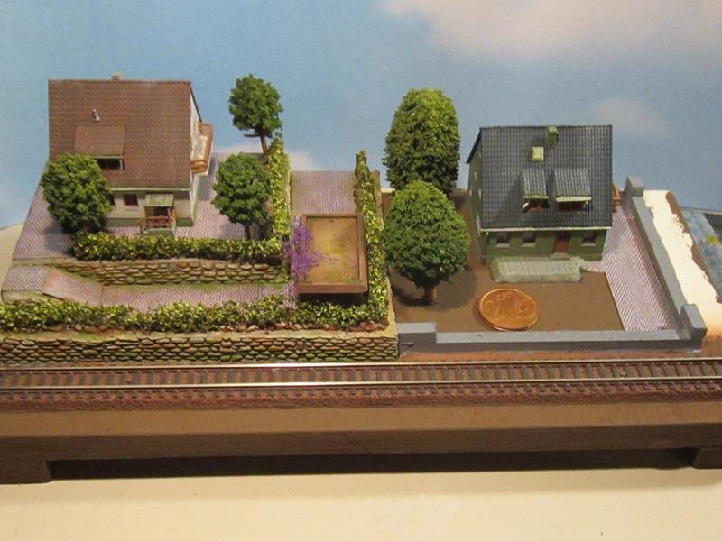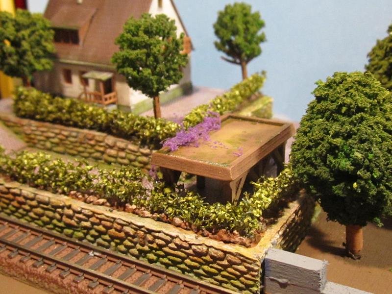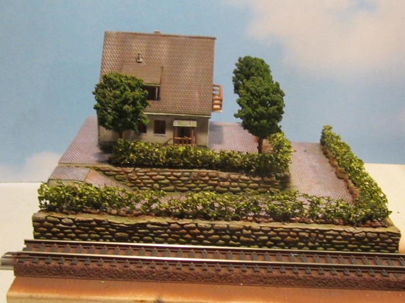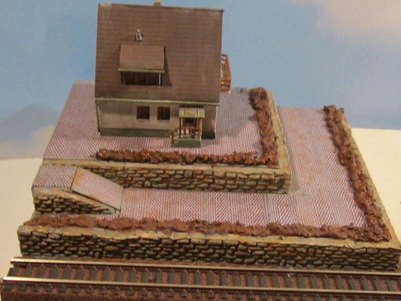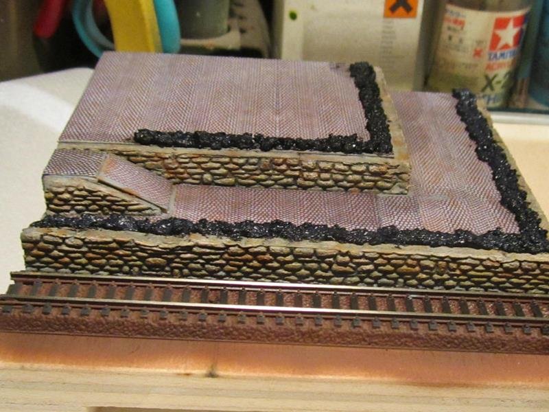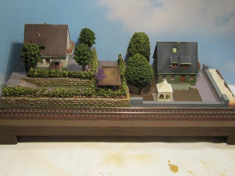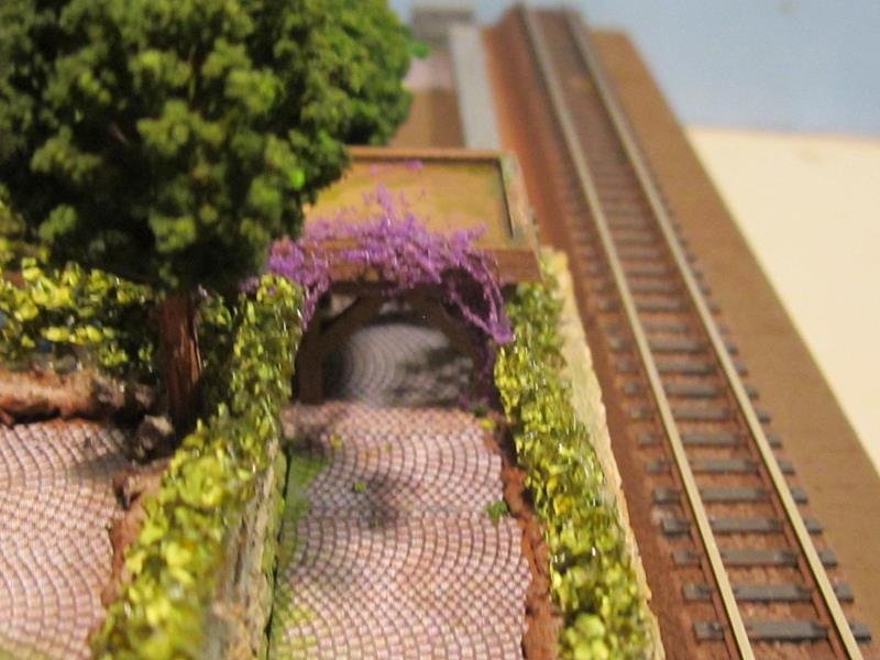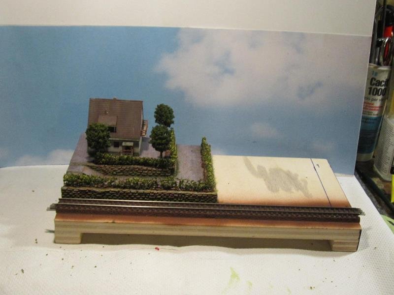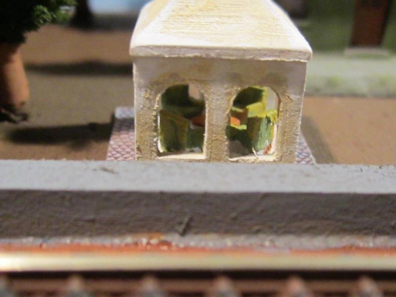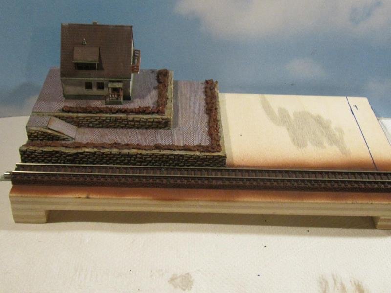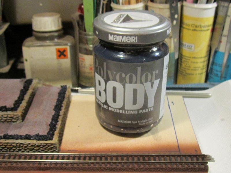bene, dopo aver passato il film ad olio per uniformare le varie sfumature di colore sui muretti ho provveduto a creare la striscia di terreno dove ospiterà la siepe e qualche alberello ornamentale.