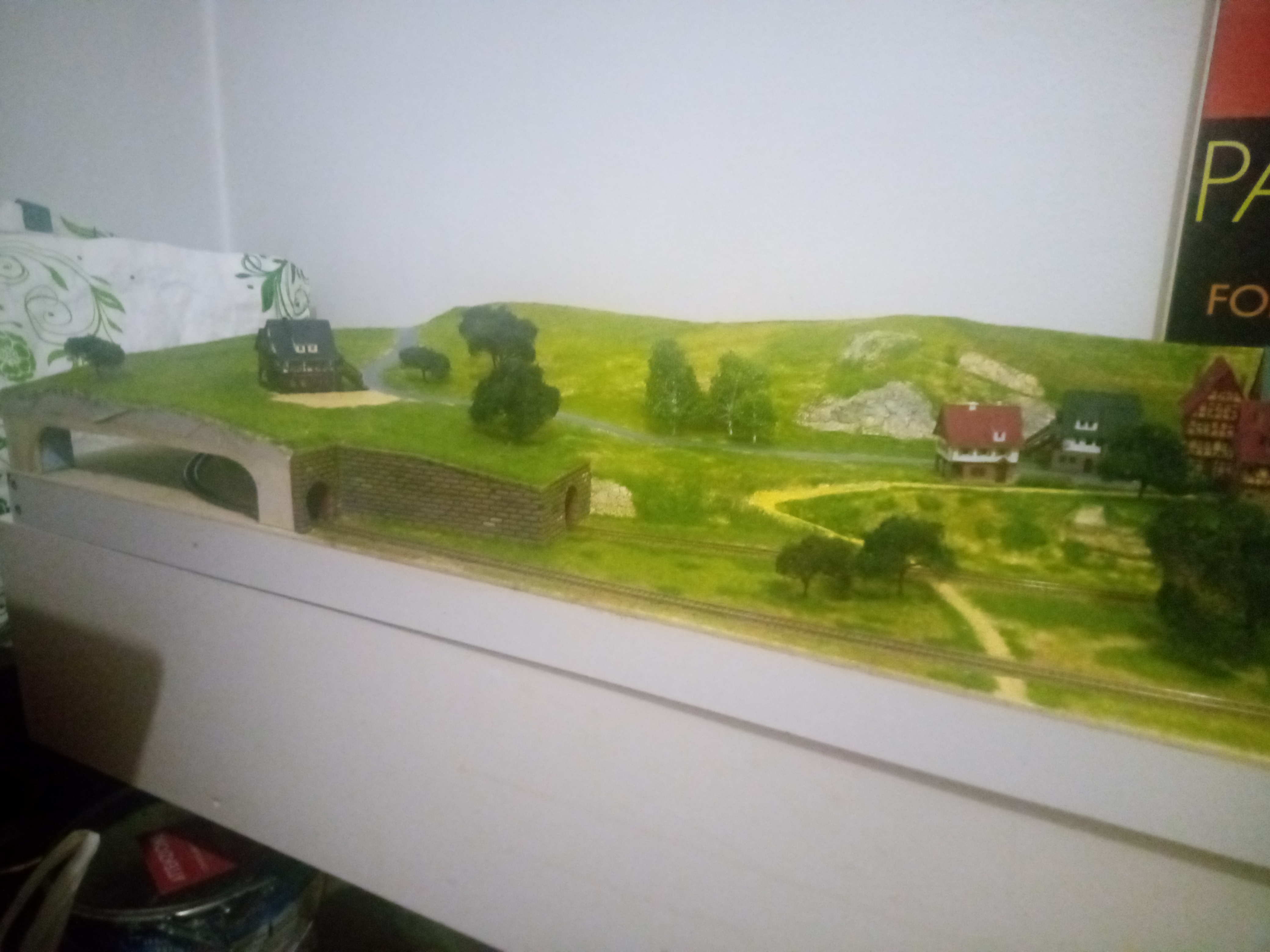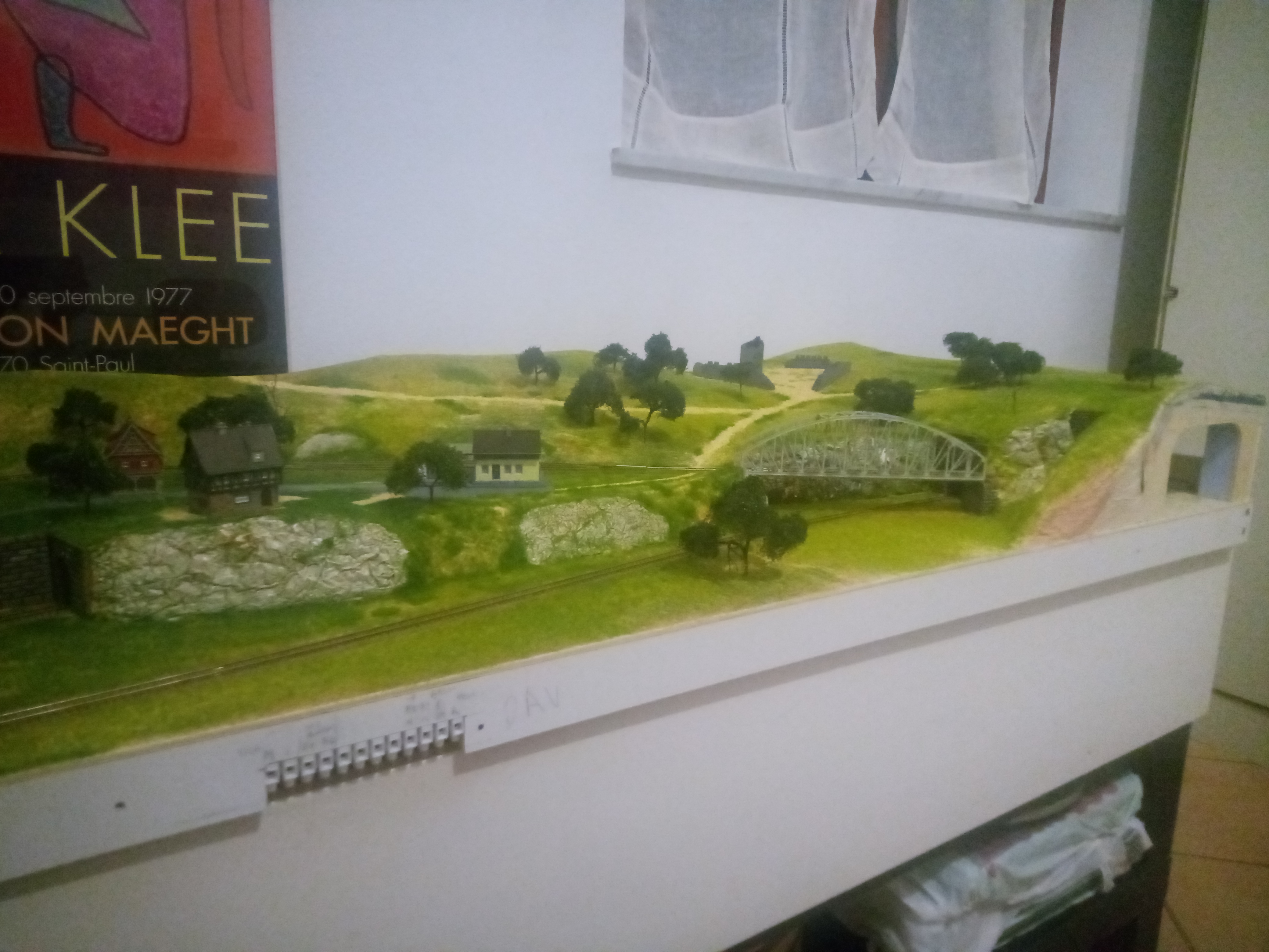 Il modulo sx ha la funzione di un anello di ritorno,con stazione nascosta a 2 binari e nella parte a vista ho intenzione di fare scorrere il tracciato sopra un viadotto.