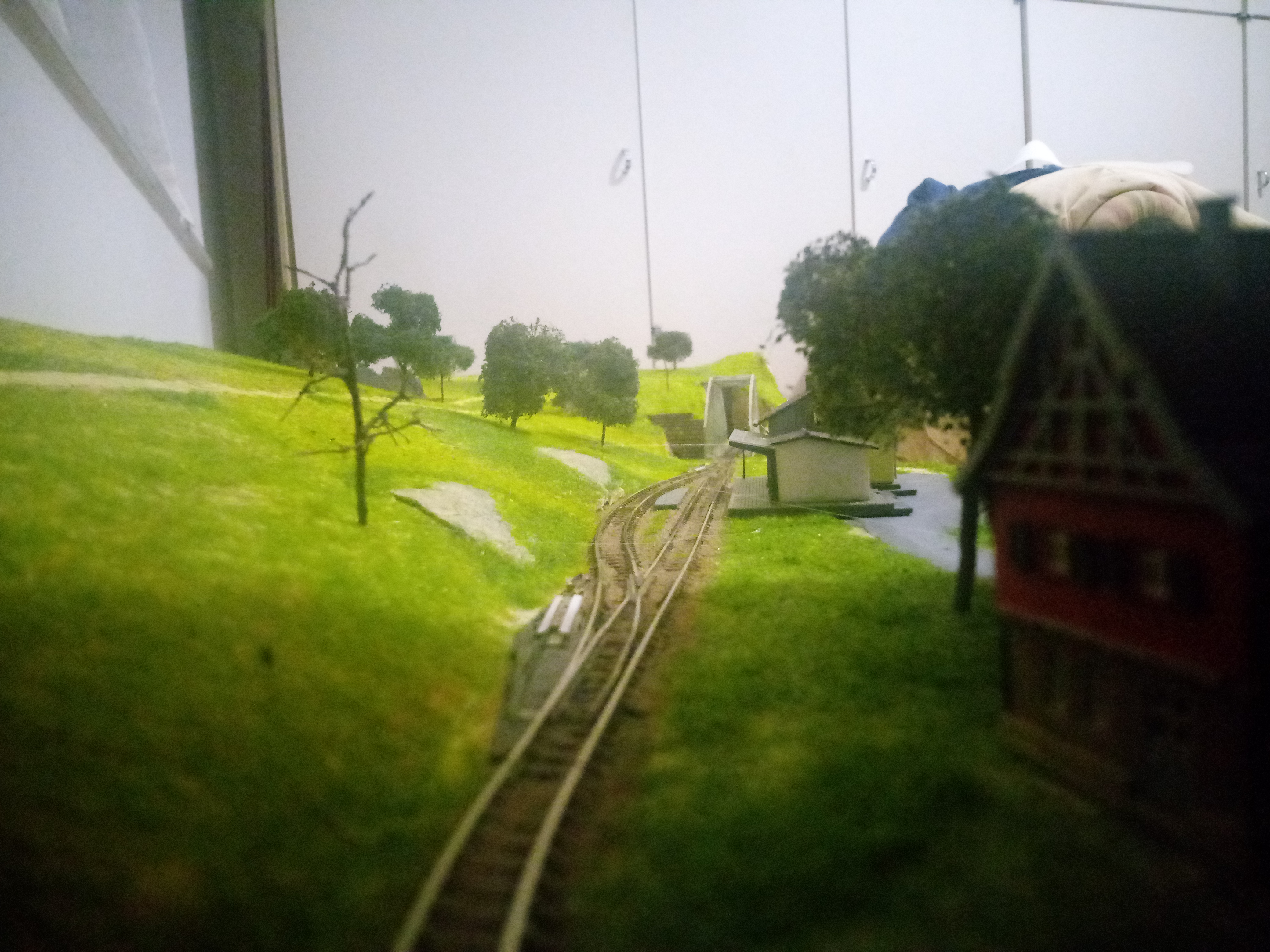 Mentre nel modulo dx il tracciato sale fino ad arrivare ad una stazione di testa.quindi,sganciavagoni per ogni tronchino e piattaforma per girare le locomotive a vapore.quest ultima ho intenzione di autocostruirla.