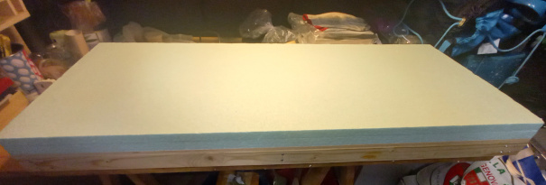 Dopodiché ho incollato (solo tra di loro) i due pannelli da 2 cm (totale 4cm di altezza) con la poliuretanica: