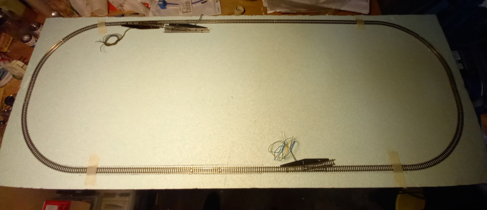 Una volta fissato l'EPS al fondo procederò con la marcatura del tracciato e poi la posa delle massicciate e dei binari.