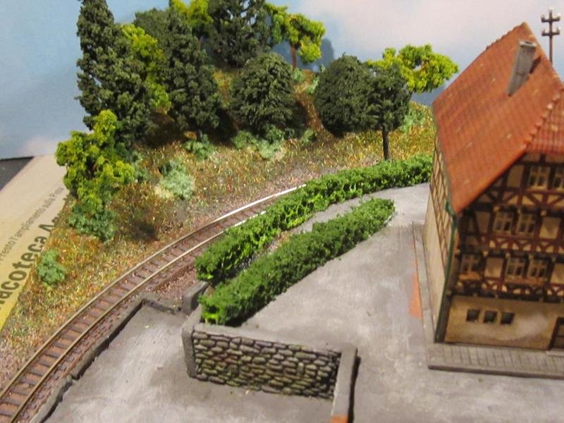 L' altro fattore che mi ha fatto decidere di non utilizzare un filo è la disposizione dei pali. Uno per ogni testata di un modulo dritto e tre per quelli curvi , la loro posizione avrebbe creato un difetto ottico non da poco. Meglio abbozzare l' idea di una linea telegrafica/elettrica mettendo solo i pali sui moduli in modo corretto esteticamente. Qualche volta basta solo accennare un elemento nelle scale piccole