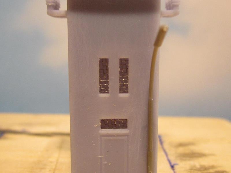 Tornando al modello in base alle foto in rete ho solo aggiunto una retina metallica al interno dei finestroni è un lampione. peccato che si vedrà poco causa la posizione sul plastico