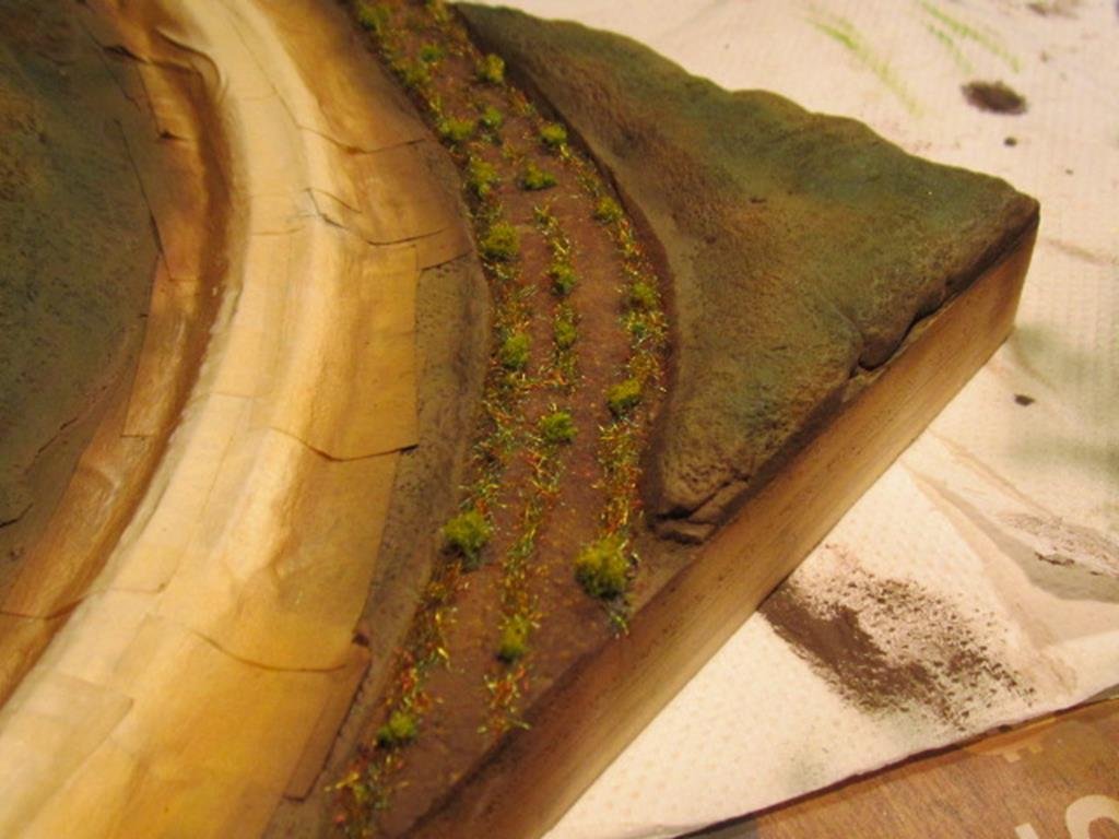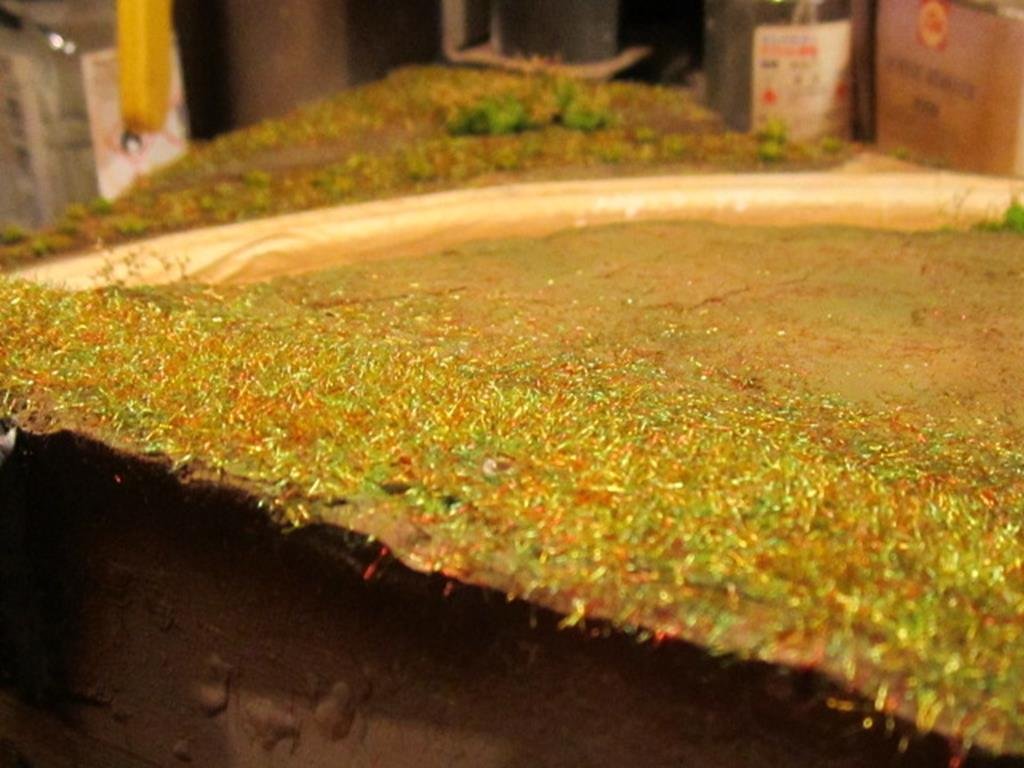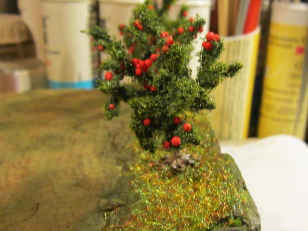 Il primo passo è stato aerografare del verde oliva opaco sulla chioma come fondo per avere un colore più indicato al fogliame invece che quello del flock utilizzato troppo innaturale.
