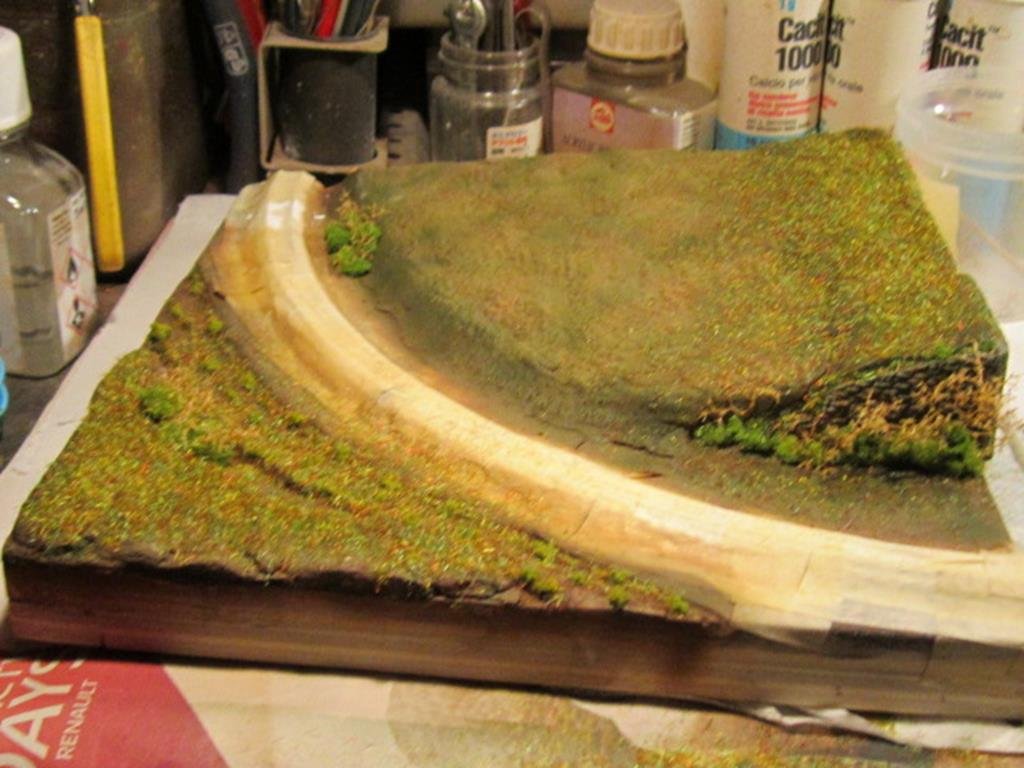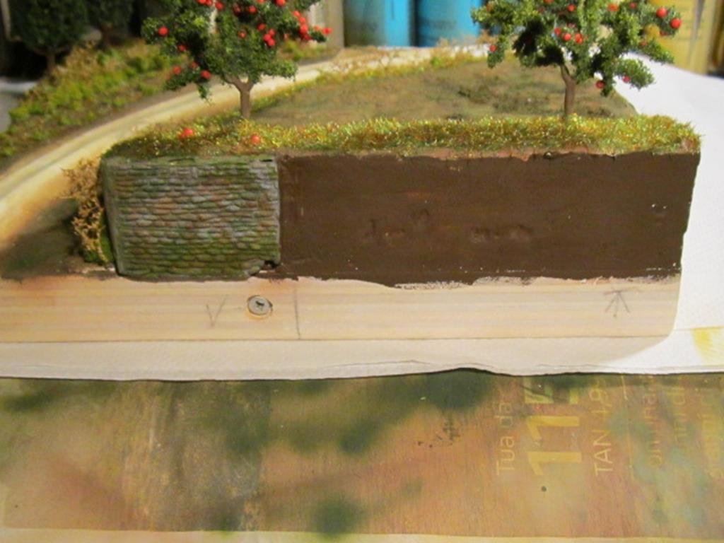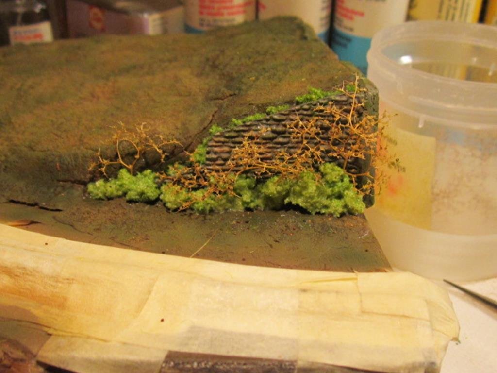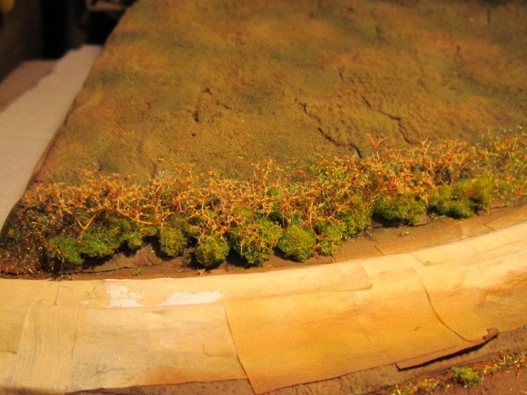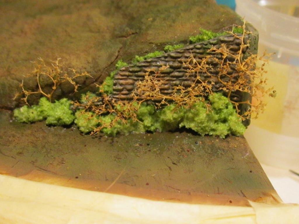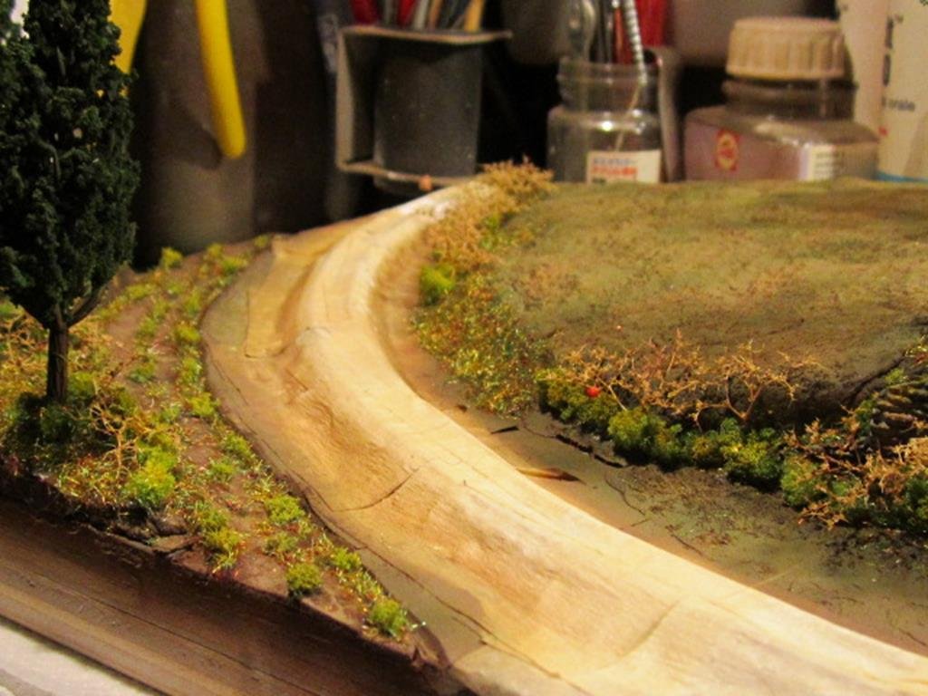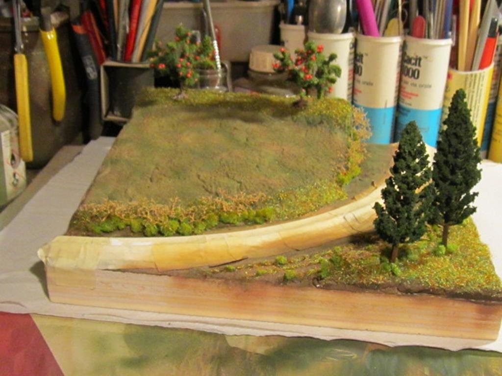 Infine sui tronchi è stato passato a pennello del marrone molto diluito in modo da simulare l'alone di umidità che si crea sulla corteccia.